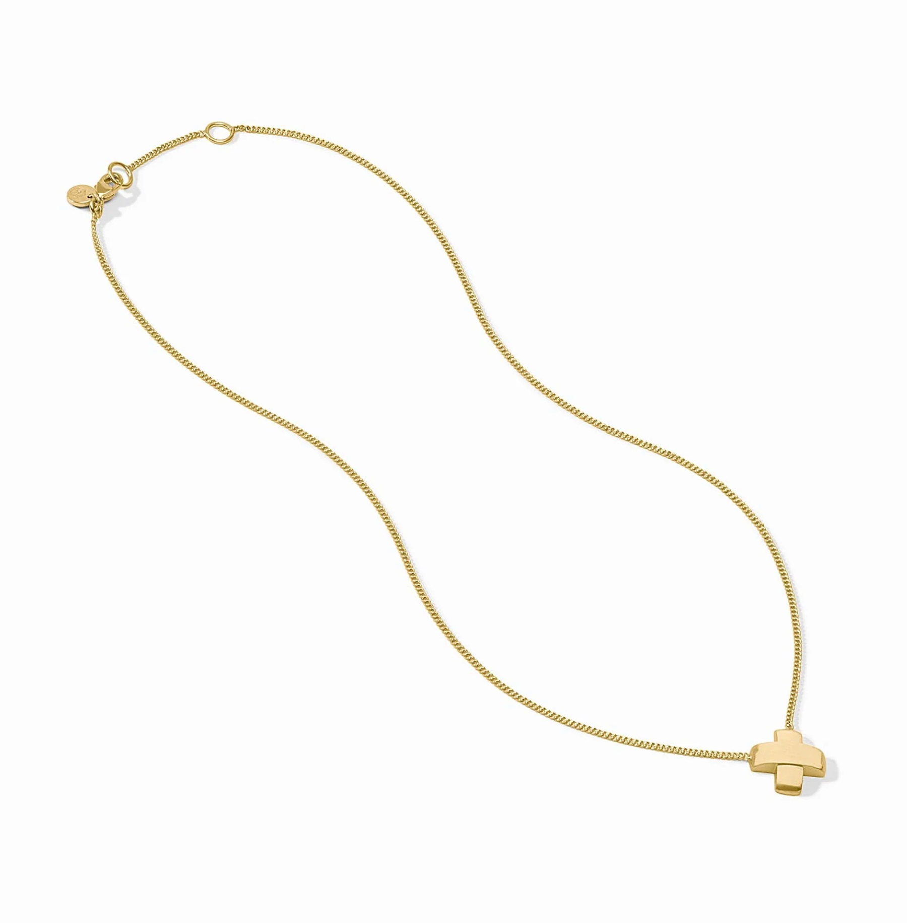 Contrasting textures unite in this X-shaped necklace where one golden bar with a lightly hammered finish overlaps another with a smooth, satiny surface, the pair linked by a delicate adjustable curb chain.