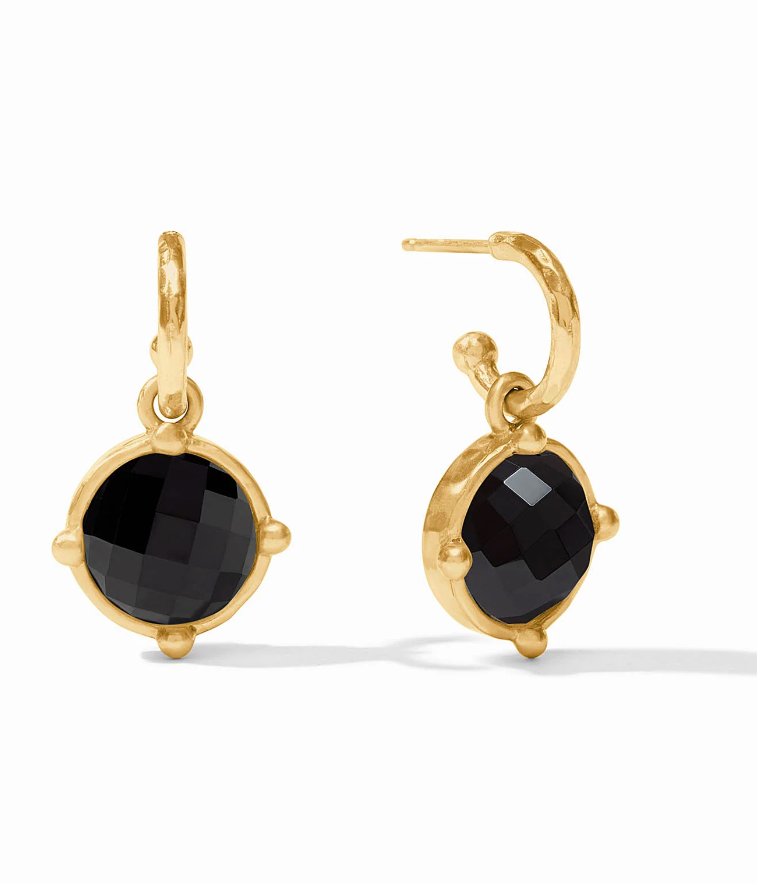 Each reversible charm features a faceted gemstone enhanced with golden beads on one side and a detailed bee cameo on the other.