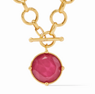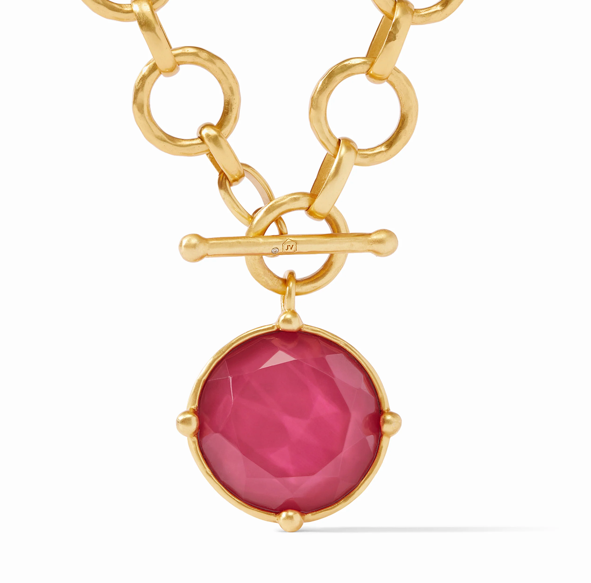 Lustrous, lightly hammered links lead to a round precision-cut statement gemstone embellished with a cameo bee on the reverse side.