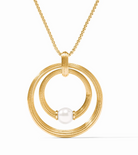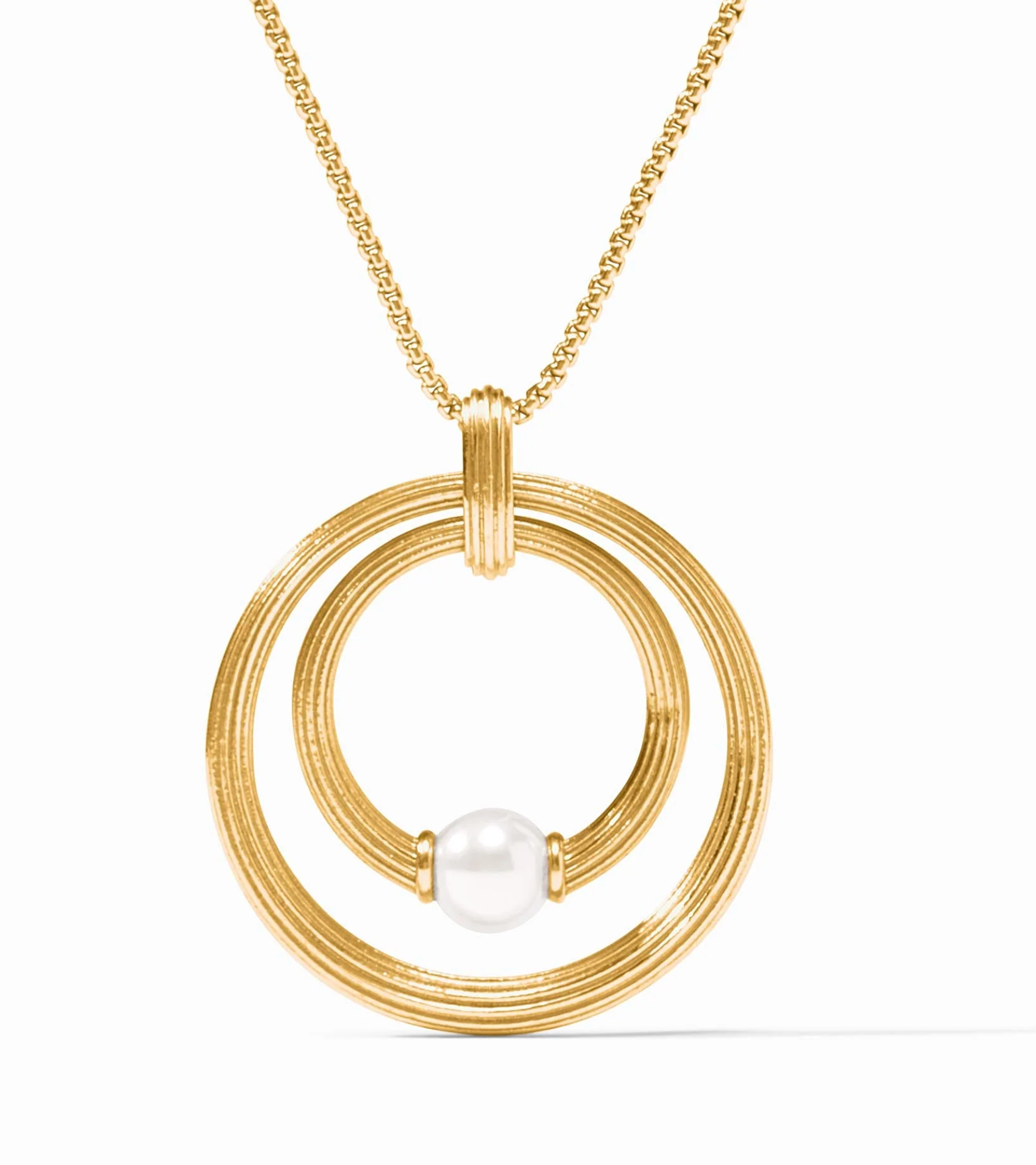 Honoring its ancient Greek roots, the fluting on this golden pendant's swaying nested rings recalls Doric columns, with the inner ring clasping a polished gemstone sphere. The matching fluted bail links the pendant to a delicate Venetian box chain.