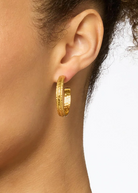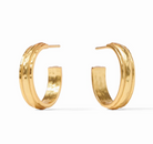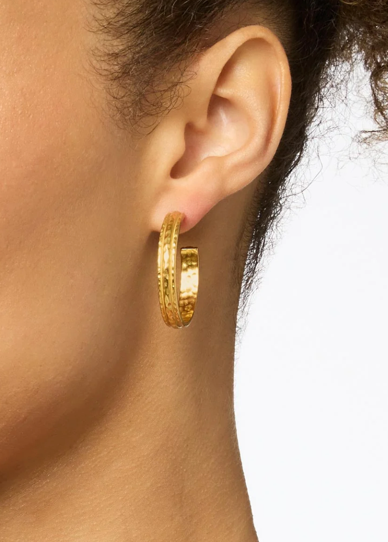 This hoop's hand-hammered golden bands softly glint and glimmer in the light.