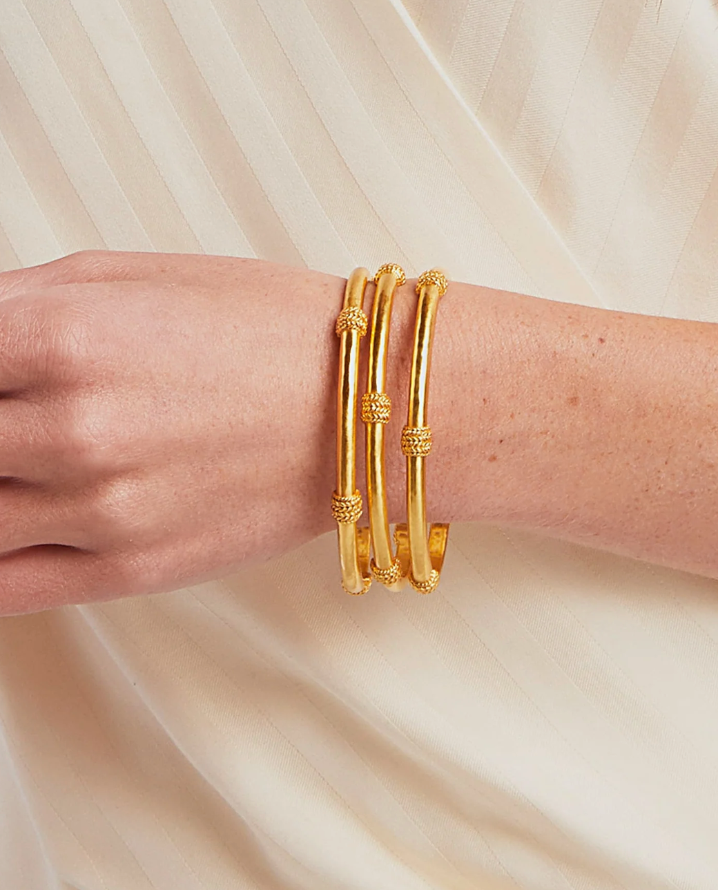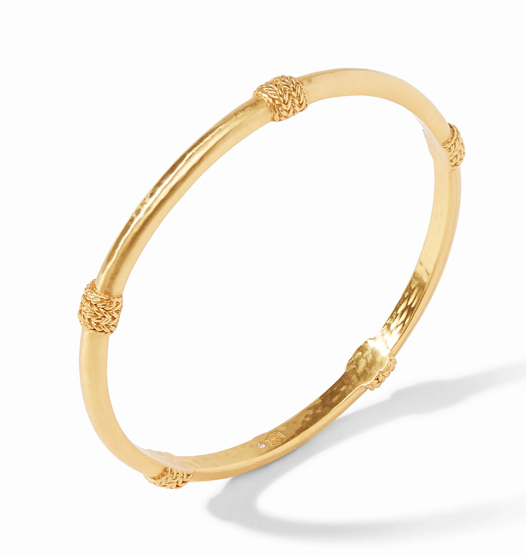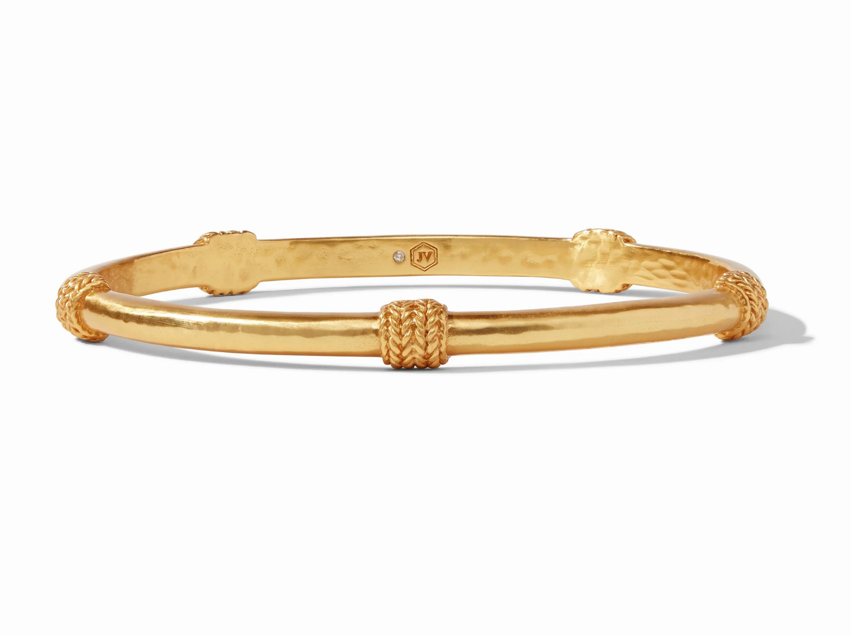Crafted with precision and elegance, the Windsor Bangle boasts a luxurious 24K gold plated bracelet. This timeless accessory not only adds a touch of sophistication to any outfit, but also guarantees durability and quality. Elevate your style with this stunning piece.
