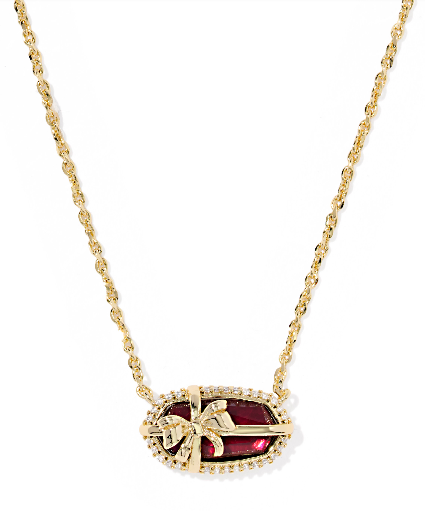 ELISA BOW SHORT PENDANT NECKLACE GOLD DARK BURGUNDY ILLUSION