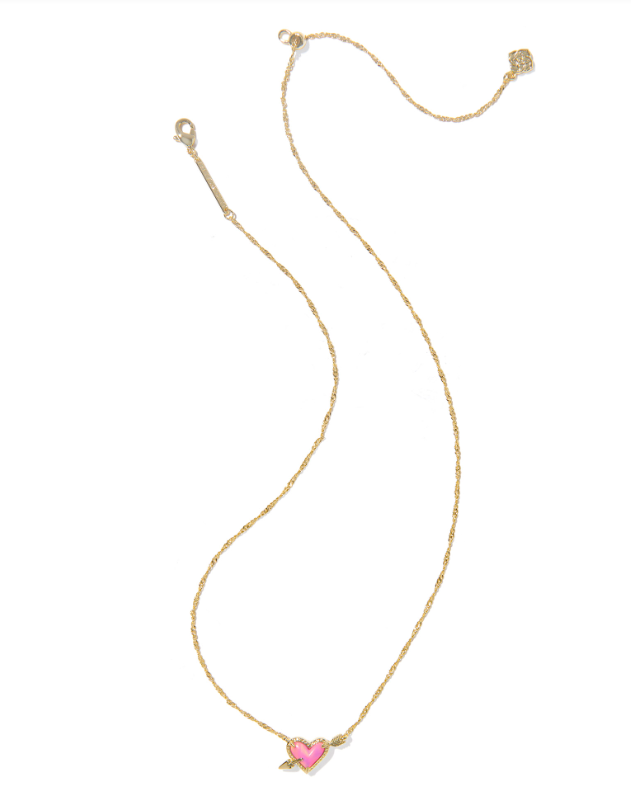 ARI HEART ARROW SHORT PENDANT NECKLACE GOLD PINK OPALESCENT RESIN