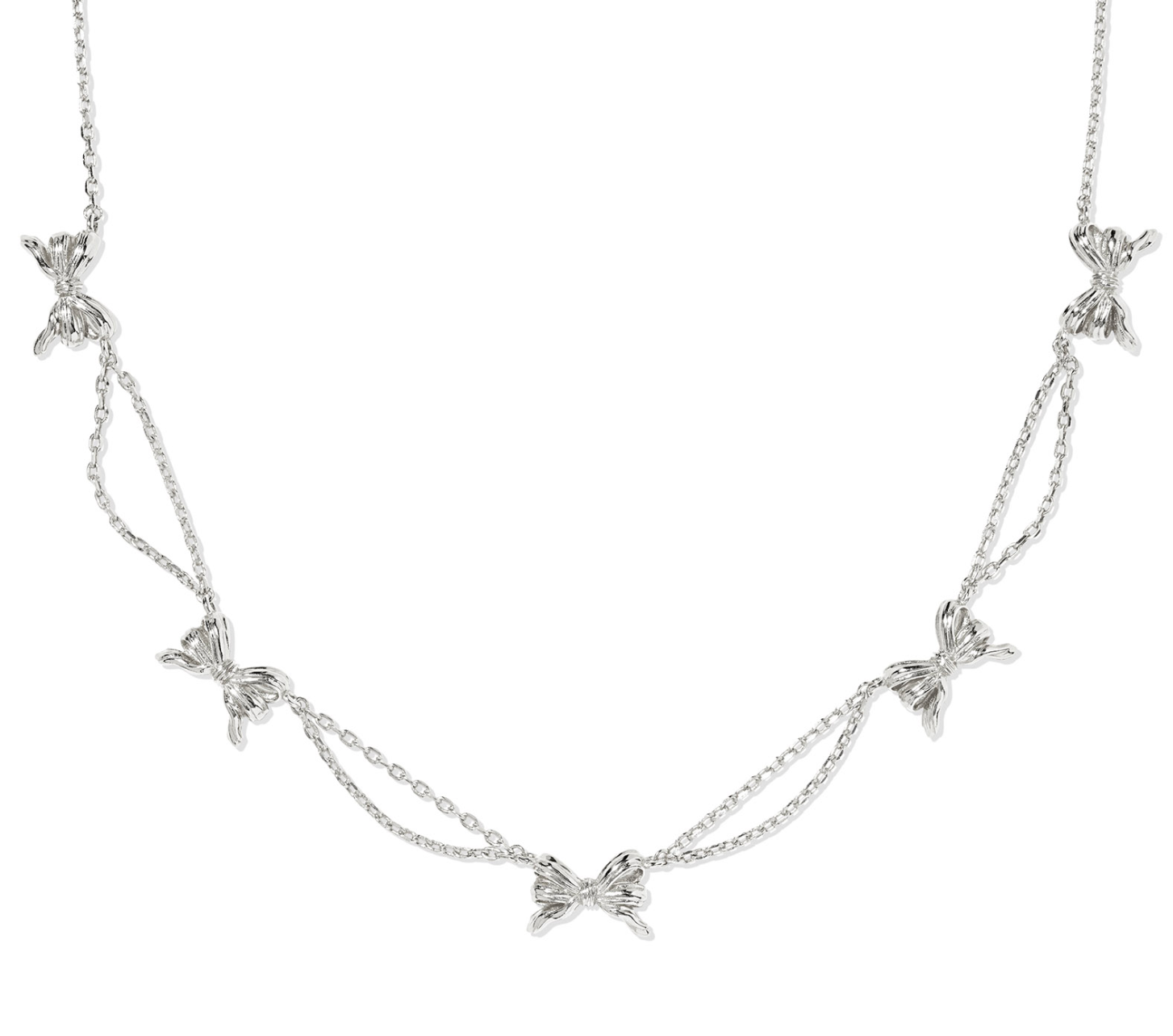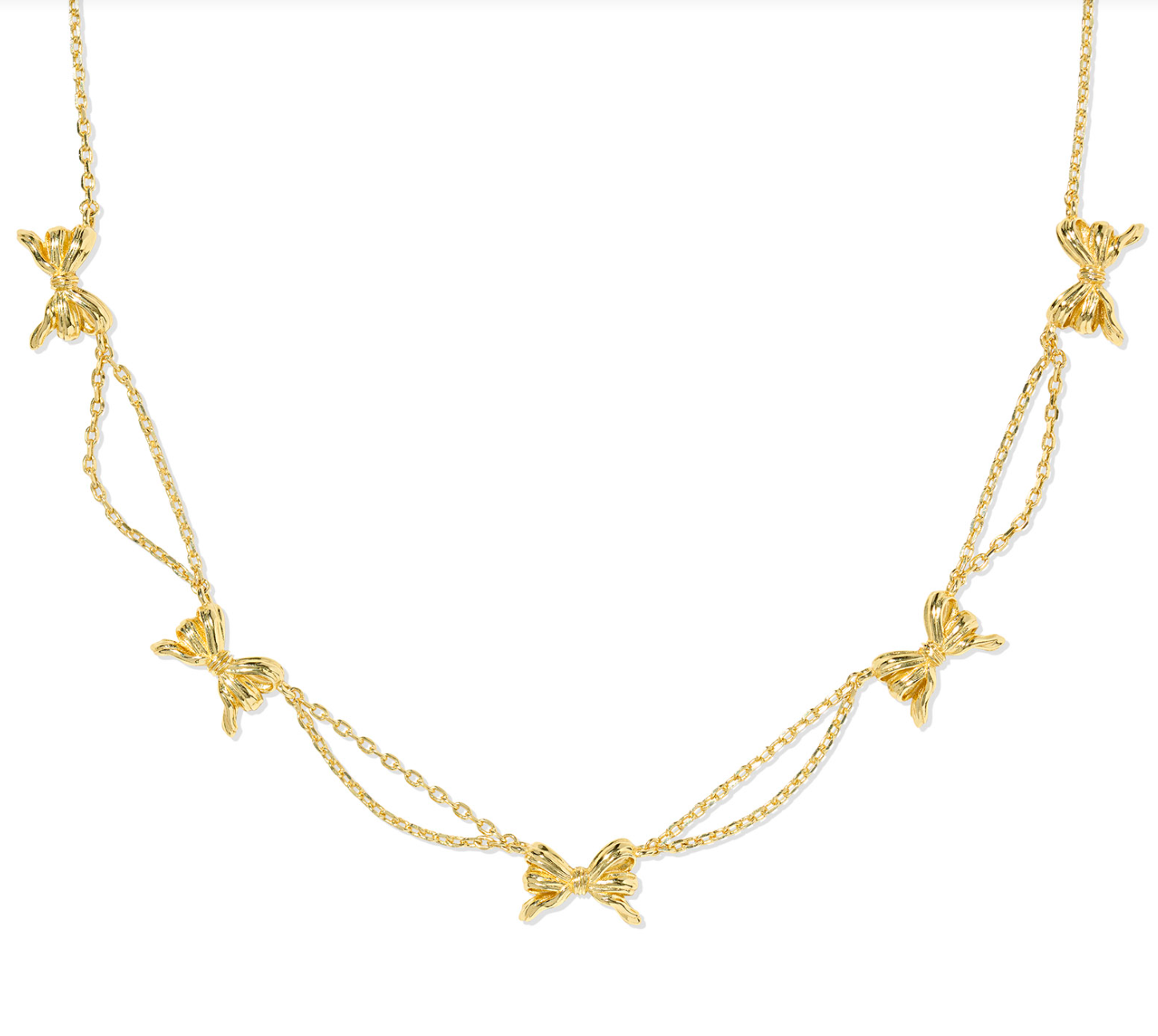 Wrap up your stack with the Bow Strand Necklace. This darling design features ribbon accents on a dainty chain. Layer it with your everyday basics or favorite bow styles for a sweet (and trendy!) look.