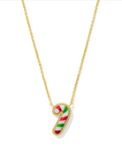 CANDY CANE SHORT PENDANT NECKLACE GOLD RED GREEN MIX