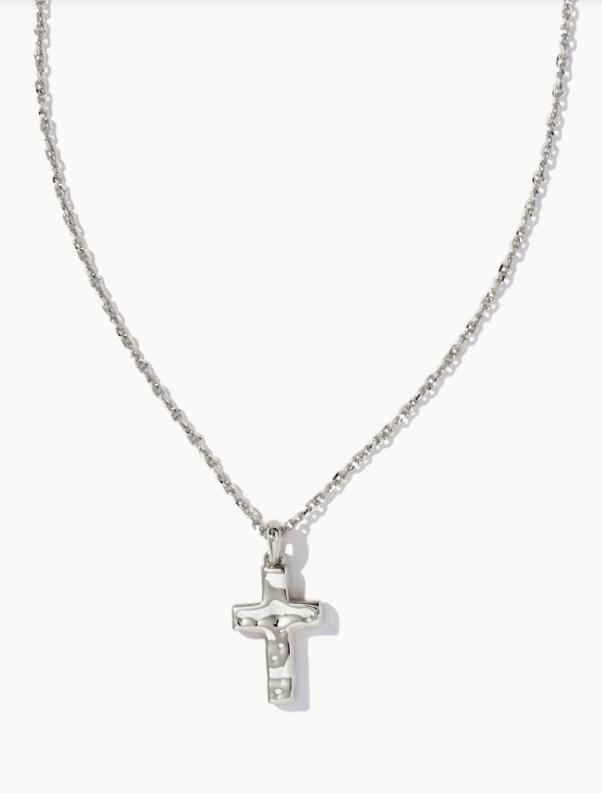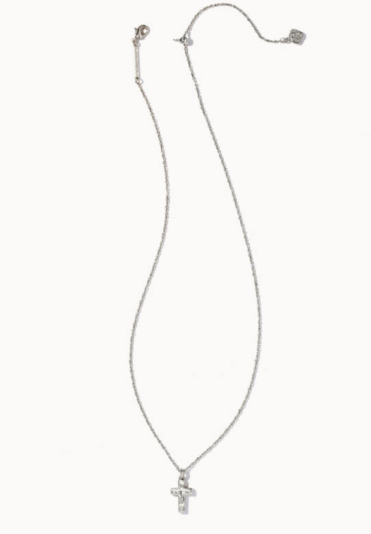 CROSS PENDANT NECKLACE RHODIUM METAL