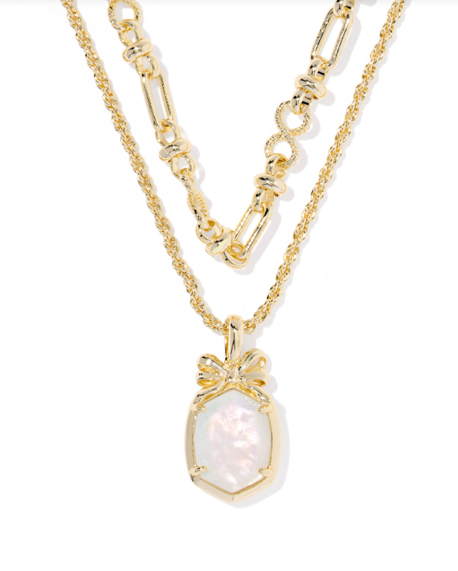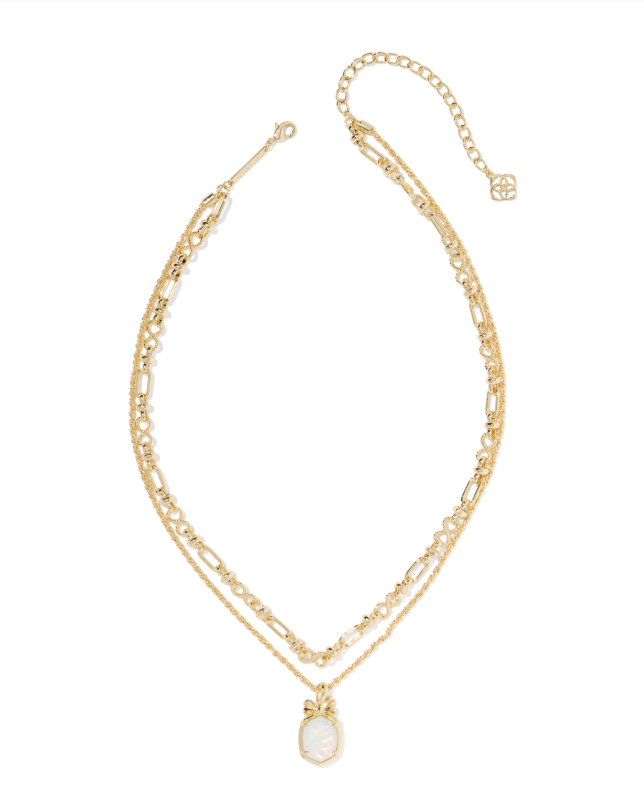 DAPHNE BOW MULTI STRAND NECKLACE GOLD IRIDESCENT CRYSTAL IVORY ILLUSION