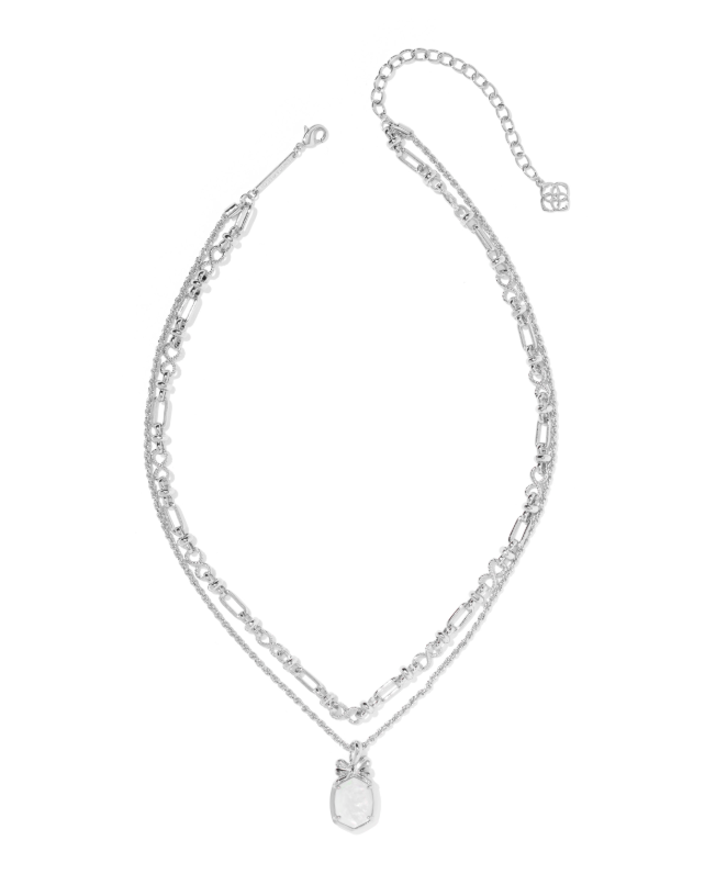 DAPHNE BOW MULTI STRAND NECKLACE SILVER IRIDESCENT CRYSTAL IVORY ILLUSION