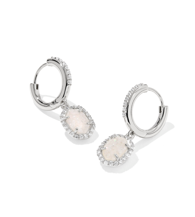DAPHNE CRYSTAL FRAME HUGGIE EARRINGS SILVER IRIDESCENT DRUSY