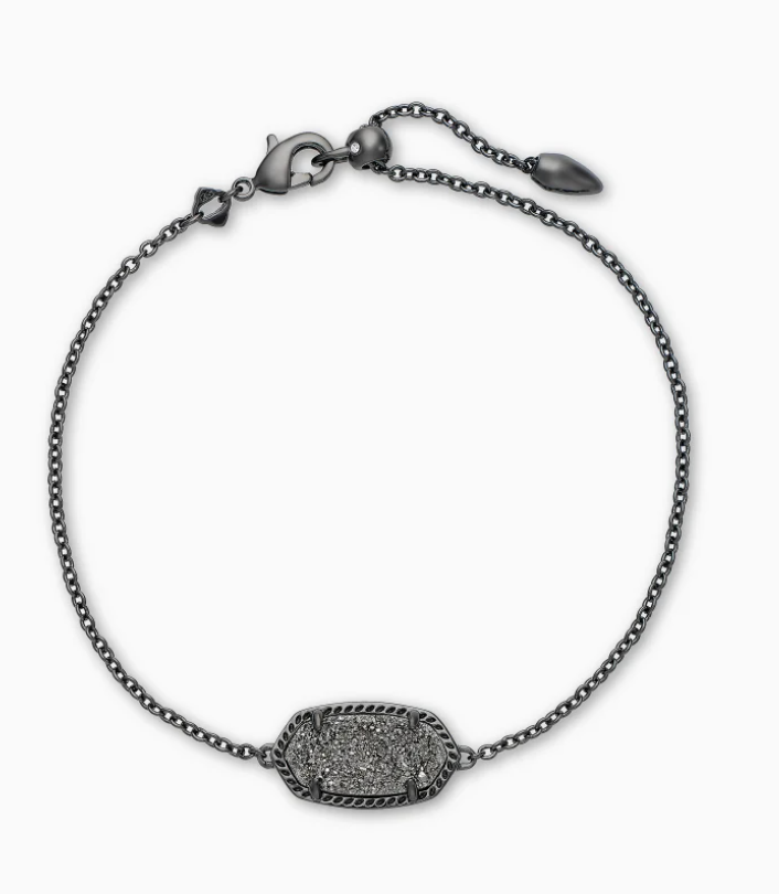 Delicate and iconic, the Elaina Gunmetal Single Slide Bracelet in Platinum Drusy makes it easy to find the perfect fit for your wrist with its lobster claw clasp and adjustable sliding bead.