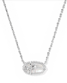 ELISA BOW SHORT PENDANT NECKLACE SILVER IRIDESCENT CRYSTAL IVORY ILLUSION