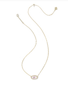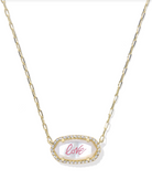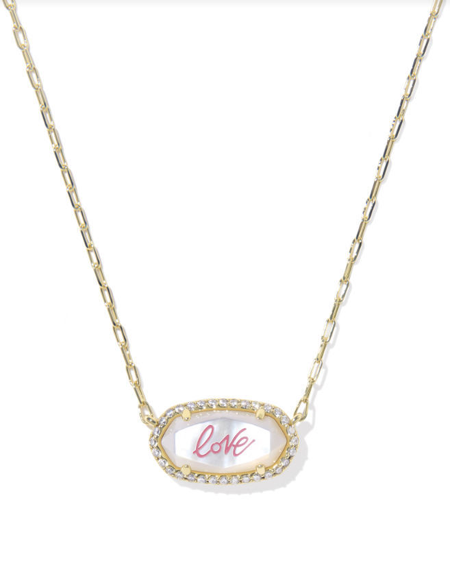 ELISA PAVE FRAME SHORT PENDANT NECKLACE GOLD IVORY MOTHER OF PEARL LOVE SCRIPT