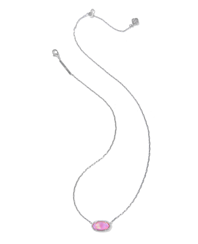 ELISA PAVE FRAME SHORT PENDANT NECKLACE SILVER PINK OPALESCENT RESIN