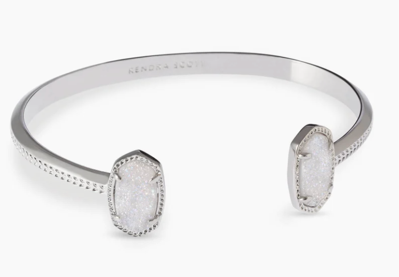 A dainty pinch cuff bookended with our signature oval stones, the Elton Silver Cuff Bracelet in Iridescent Drusy is a stack staple.