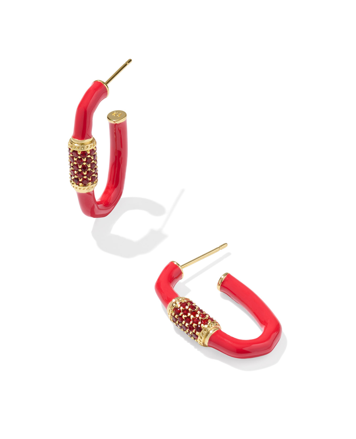EMERY ENAMEL HOOP EARRINGS GOLD RED MIX