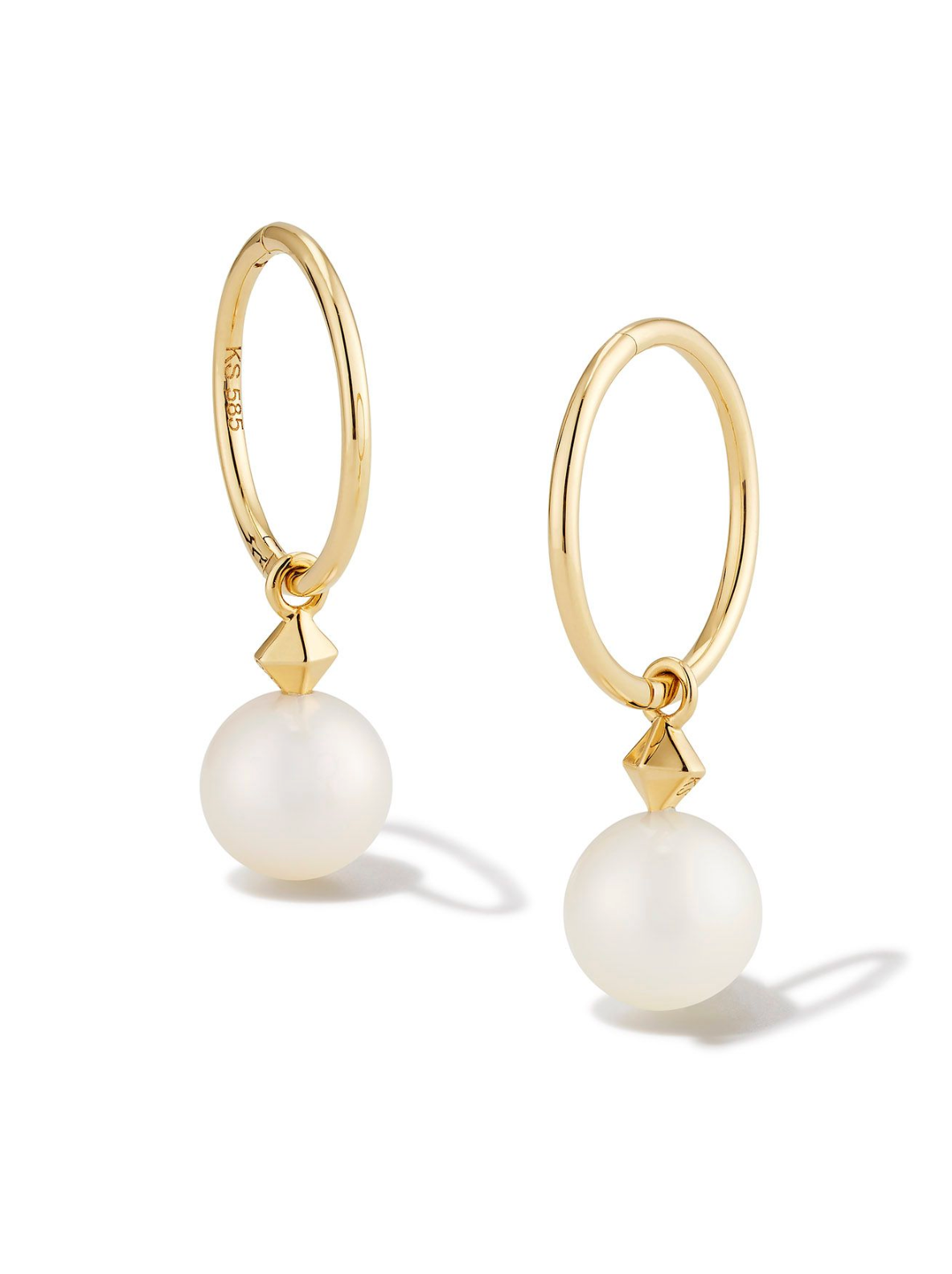 HADLEIGH HUGGIE EARRINGS 14K GOLD WHITE PEARL