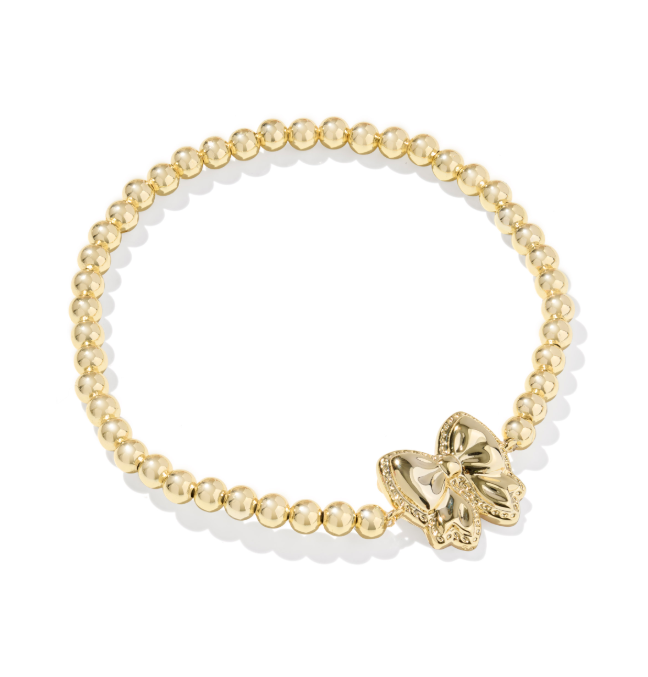 The perfect present to yourself (or a pal!), the Haley Bow Gold Stretch Bracelet adds texture and charm to any wrist stack. Shining beads combine with a custom-carved mother-of-pearl bow on a stretch bracelet style to help you top off your look. Pair with other pieces from the Haley Bow suite to tie any look together.