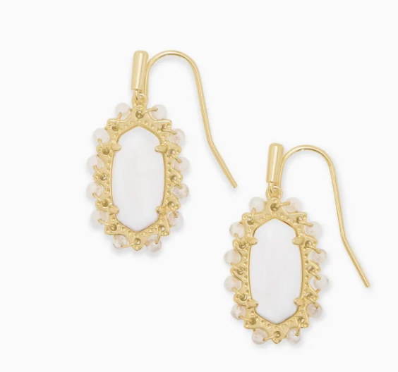Kendra Scott Beaded Lee Gold Drop Earrings In White Mussel