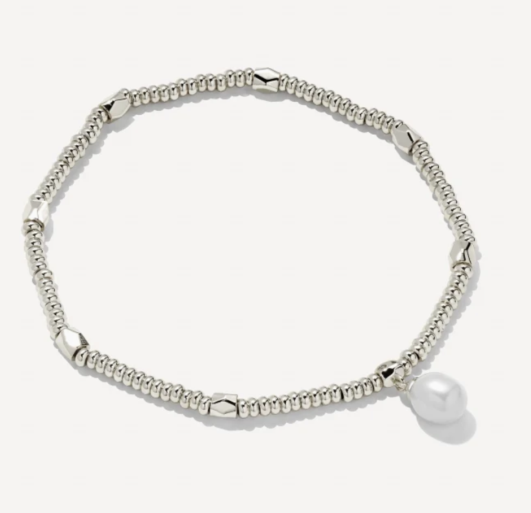 Simple, polished, and easily a classic, meet the Lindsay Silver Stretch Bracelet with White Pearl detail. Designed to fit any wrist, stack as you please with this minimalist stretch bracelet