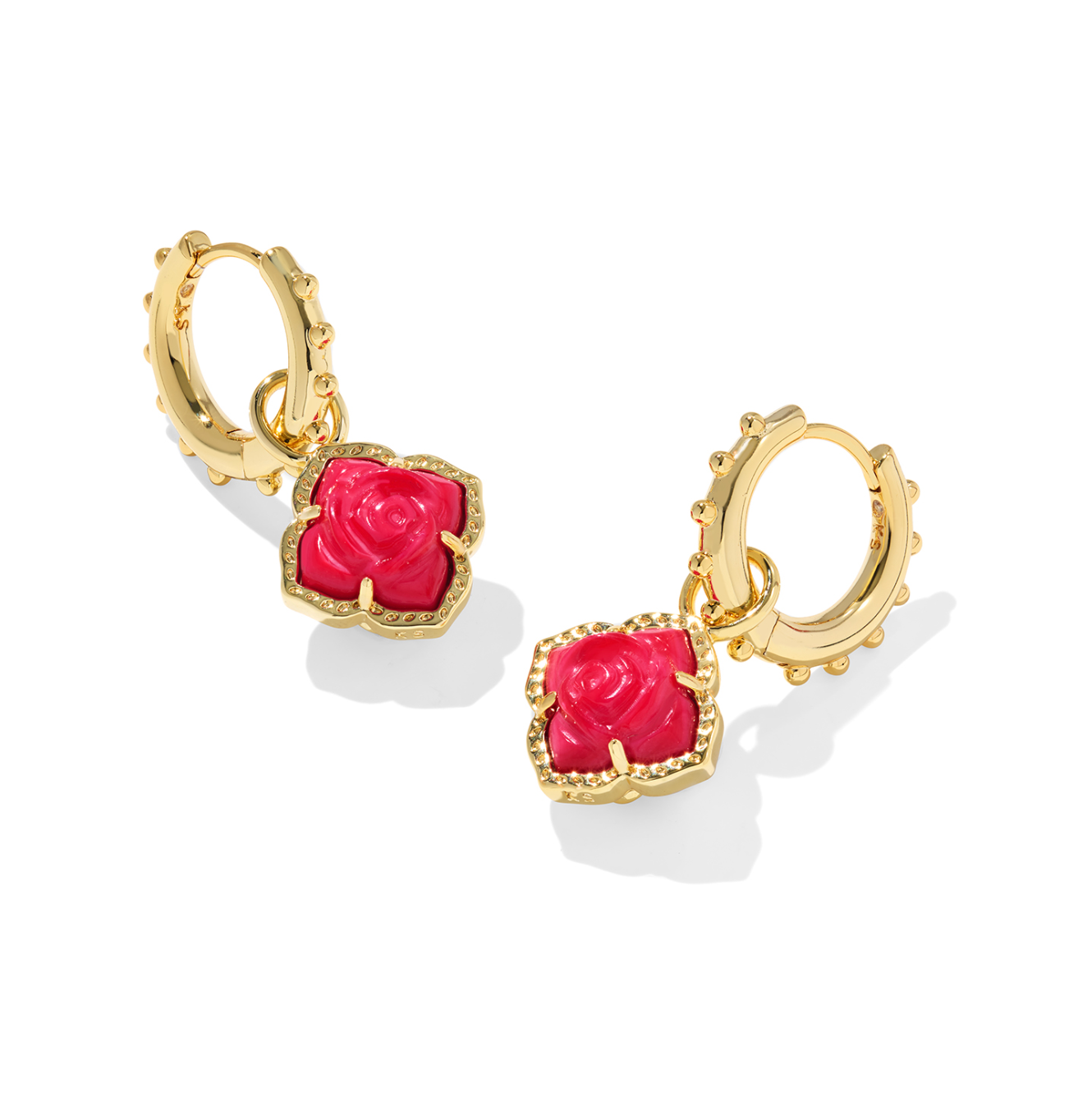Get two stunning looks in one with the Mallory Rose Gold Huggie Earrings in Red Mother of Pearl. Wear them with the sculptural roses for a romantic look or take them off for a more subtle vintage look with beautifully detailed huggie hoops. No matter the style, these earrings are ready to elevate any look with artistic elegance.