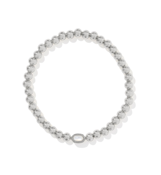 One of our bestselling bracelet styles gets the stretch treatment in the Mini Elaina Silver Stretch Bracelet in Ivory Mother of Pearl. Featuring a petite take on our signature shape and high-shine metal beads, this bracelet is an essential addition to your wrist stack.