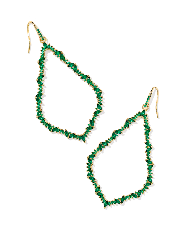 SOPHEE CRYSTAL OPEN FRAME EARRINGS GOLD GREEN CRYSTAL