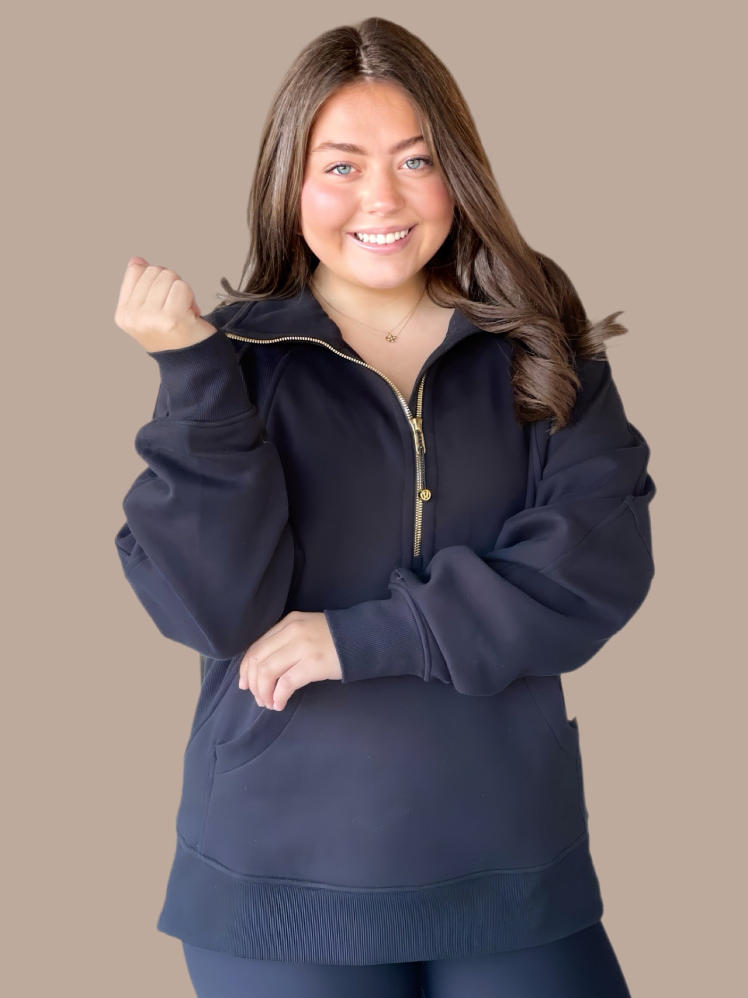 Scuba Oversized Funnel-Neck Half Zip *Long Black/Gold