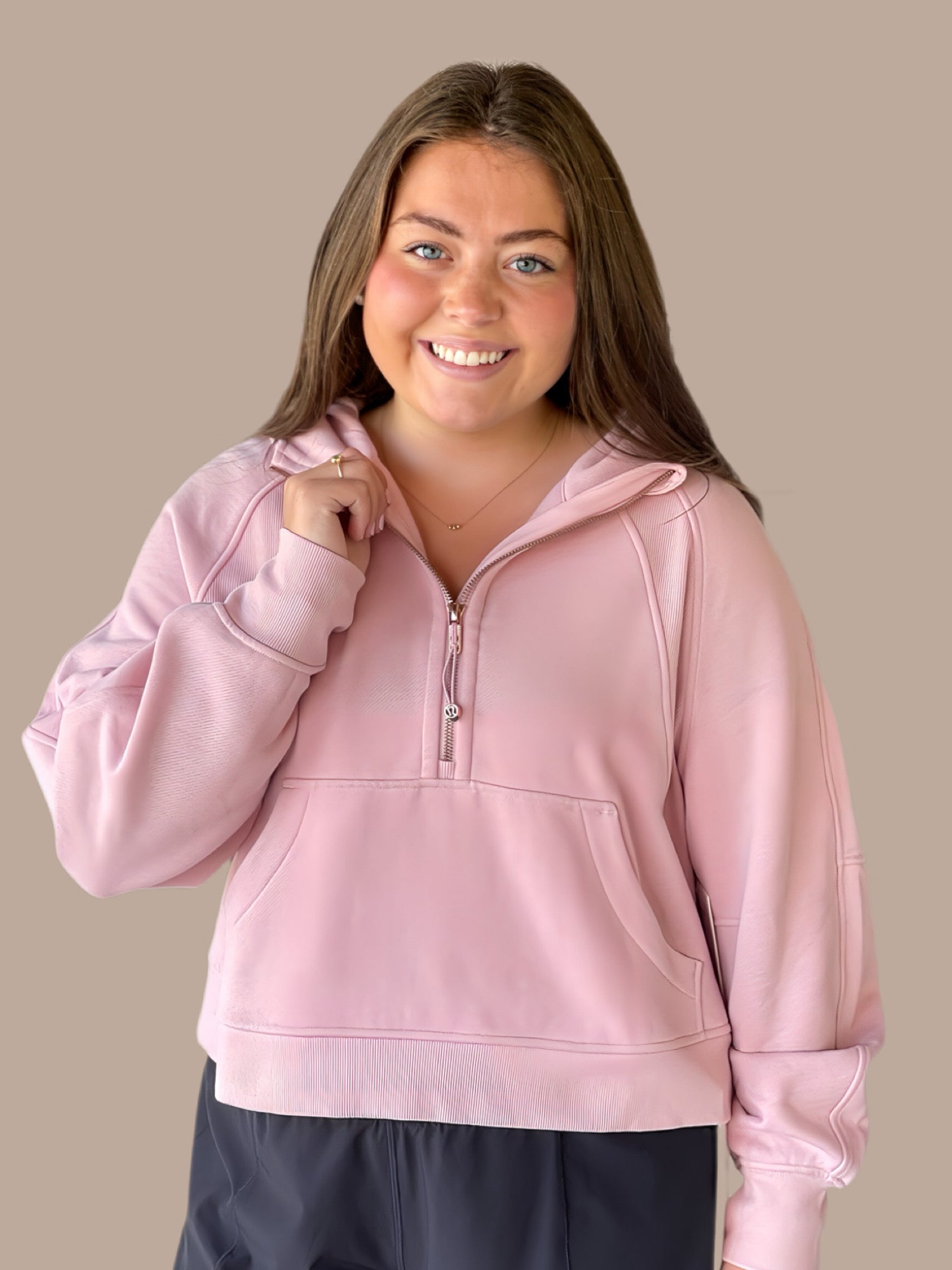 Scuba Oversized Half-Zip Hoodie- Pink