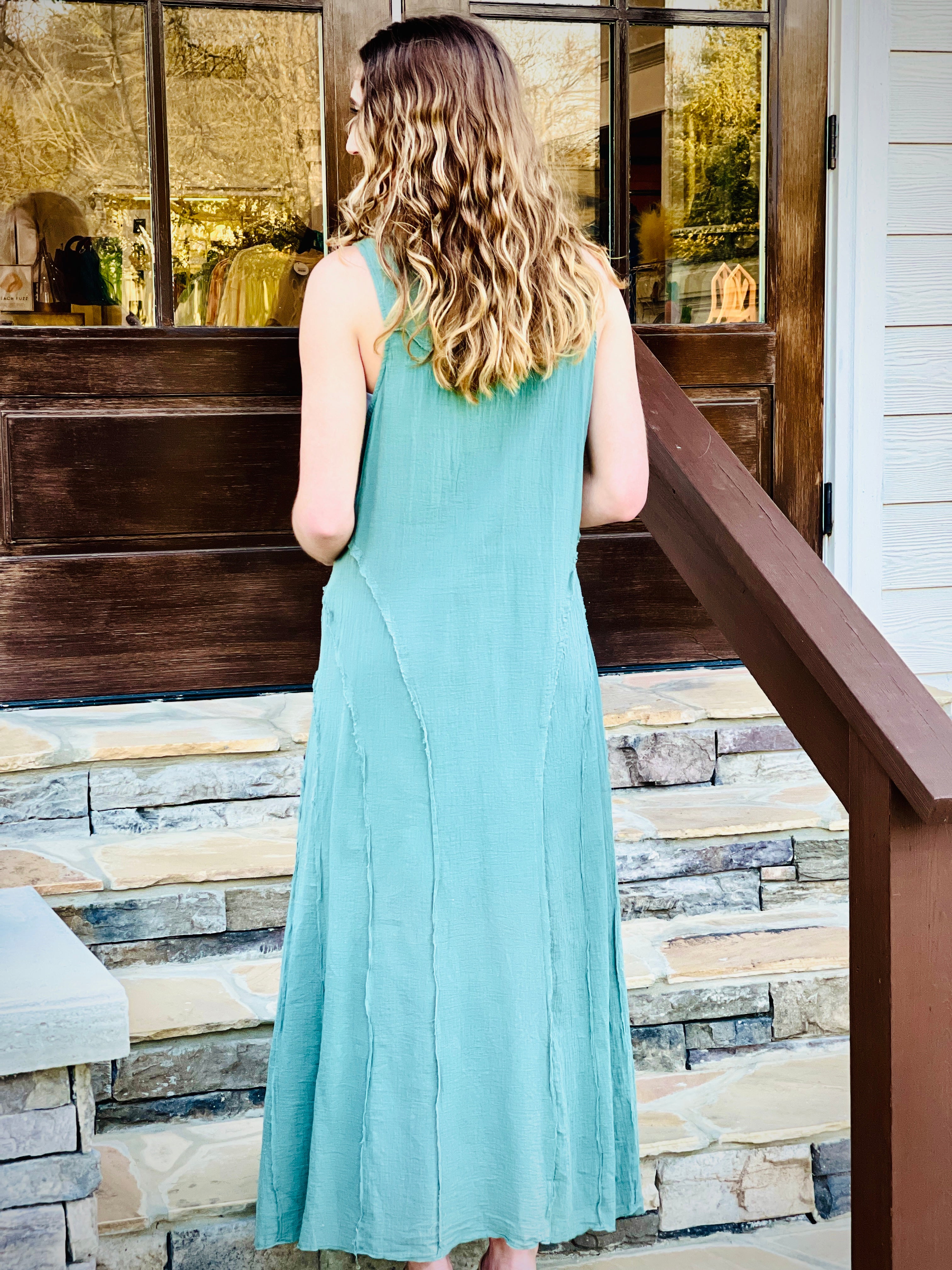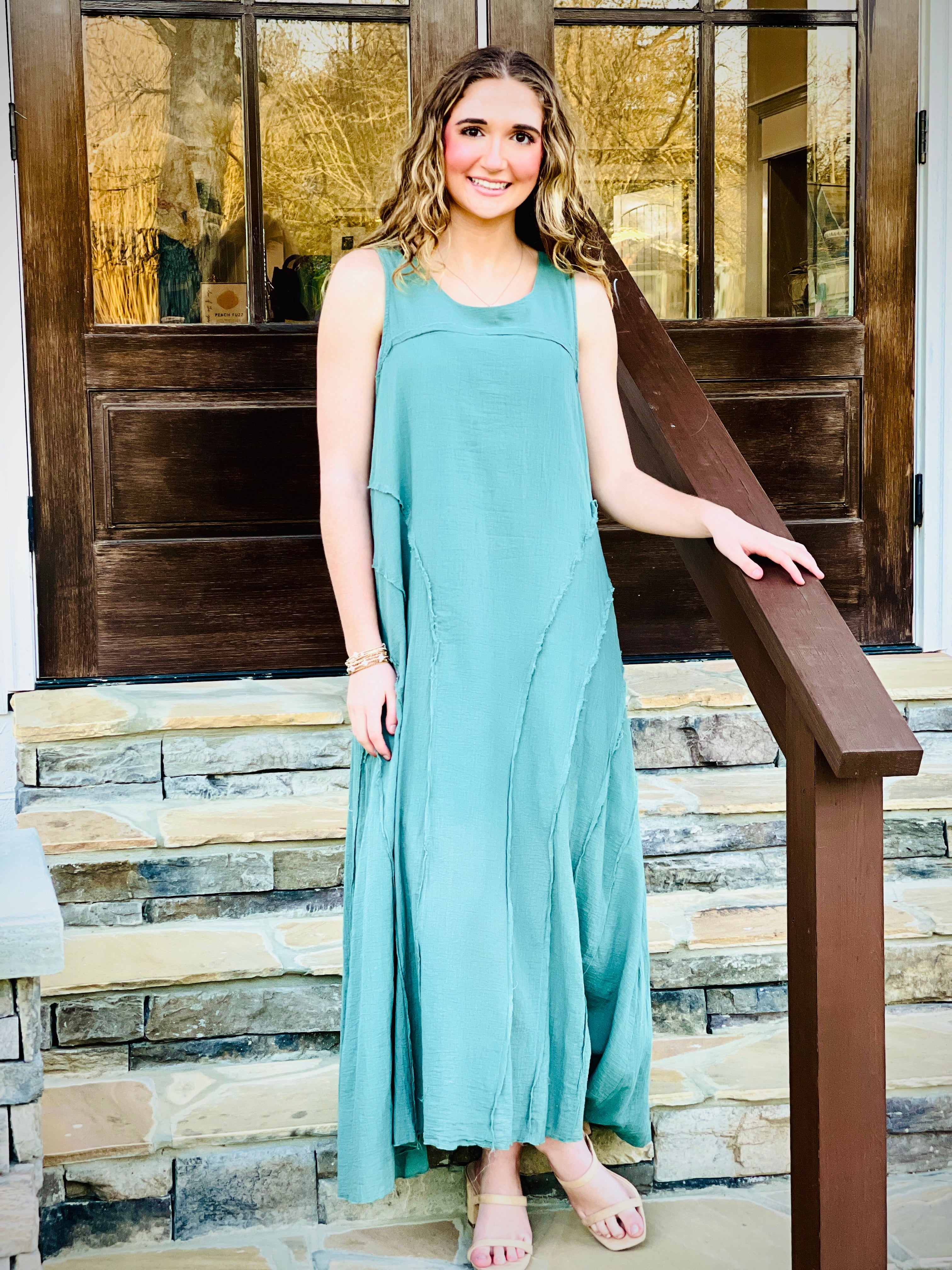 Elevate your summer wardrobe with our Round Neck Sleeveless Maxi Dress. The cut edges details add a touch of elegance, while the round neck and sleeveless design keep you cool and comfortable. Made with quality materials for a flawless fit and effortless style. Perfect for any occasion.