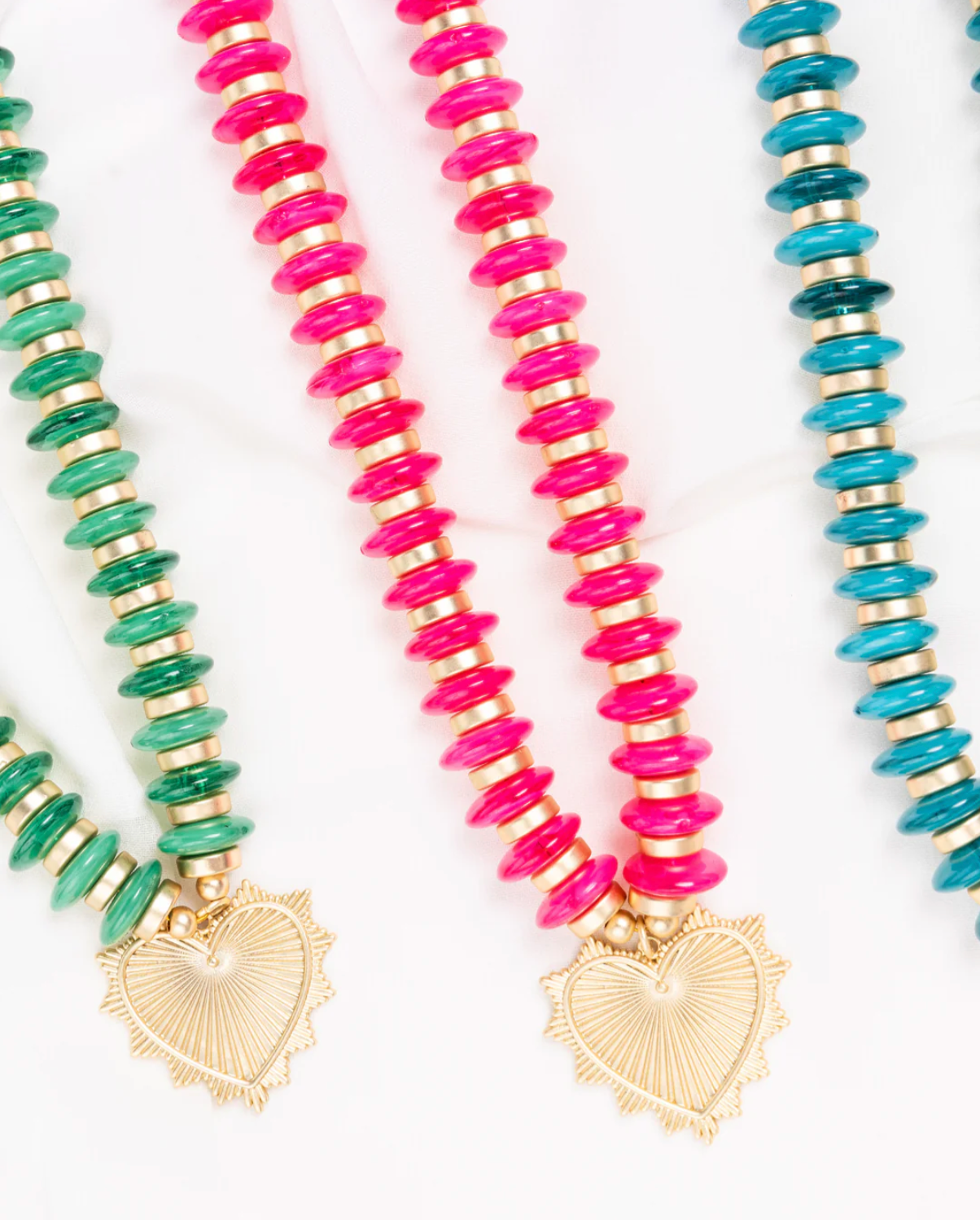 Our Anniston Necklace is the perfect blend of charm and color, featuring a dainty gold heart pendant surrounded by vibrant, colorful beads. This playful piece adds a pop of personality to any outfit, making it ideal for layering or wearing solo as a sweet statement. The mix of gold and colorful beads creates a lively, versatile accessory that transitions effortlessly from day to night.