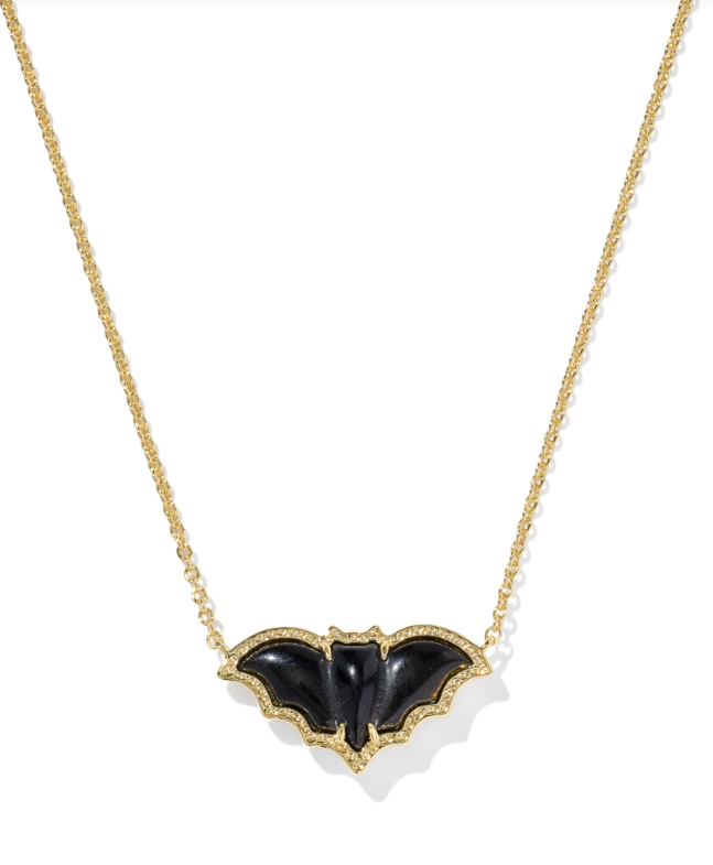 BAT SHORT PENDANT NECKLACE GOLD GOLDEN OBSIDIAN