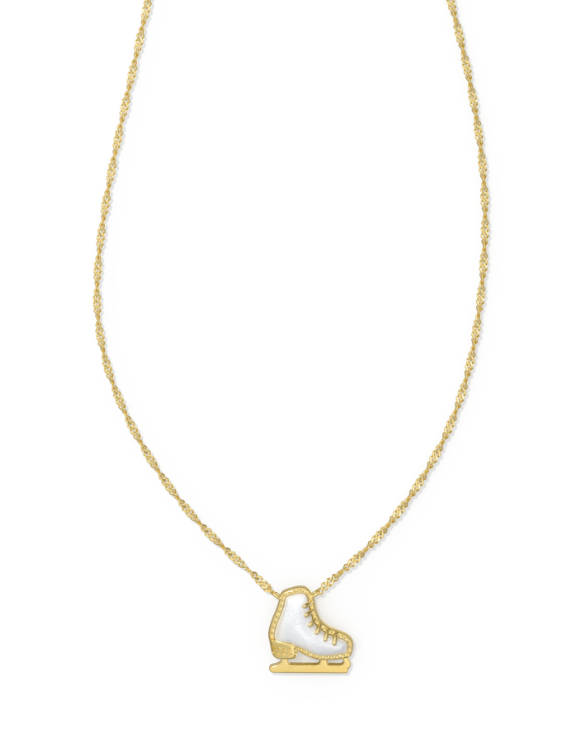ICE SKATE SHORT PENDANT NECKLACE GOLD WHITE MOTHER OF PEARL