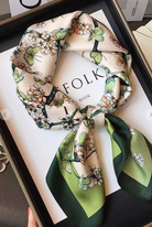 Elevate your accessory collection with this expertly crafted floral print neckerchief. Its delicate square shape offers versatile styling options, whether tied around the neck, wrist, or handbag. Featuring a refined floral pattern, this scarf adds a sophisticated yet fresh touch to any outfit, perfect for enhancing both casual and polished ensembles with subtle elegance.