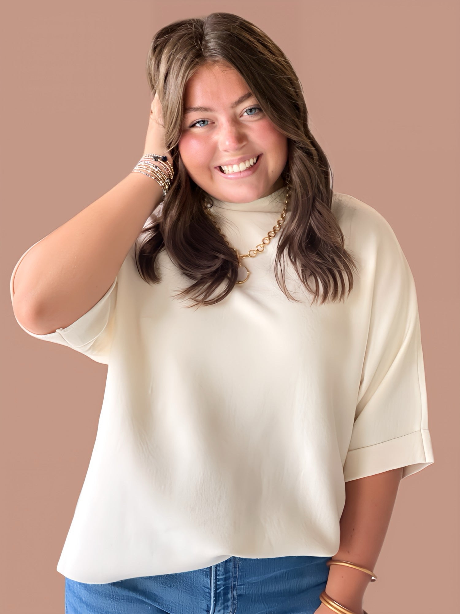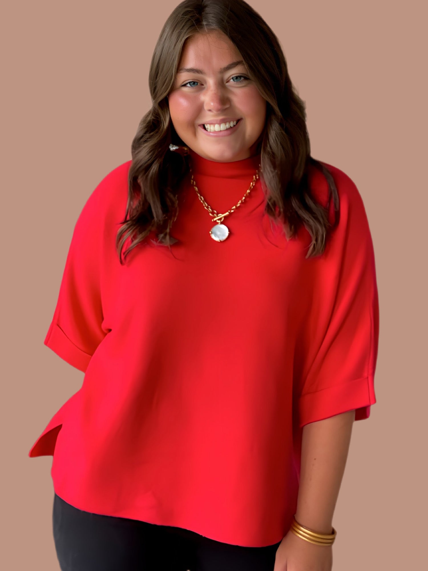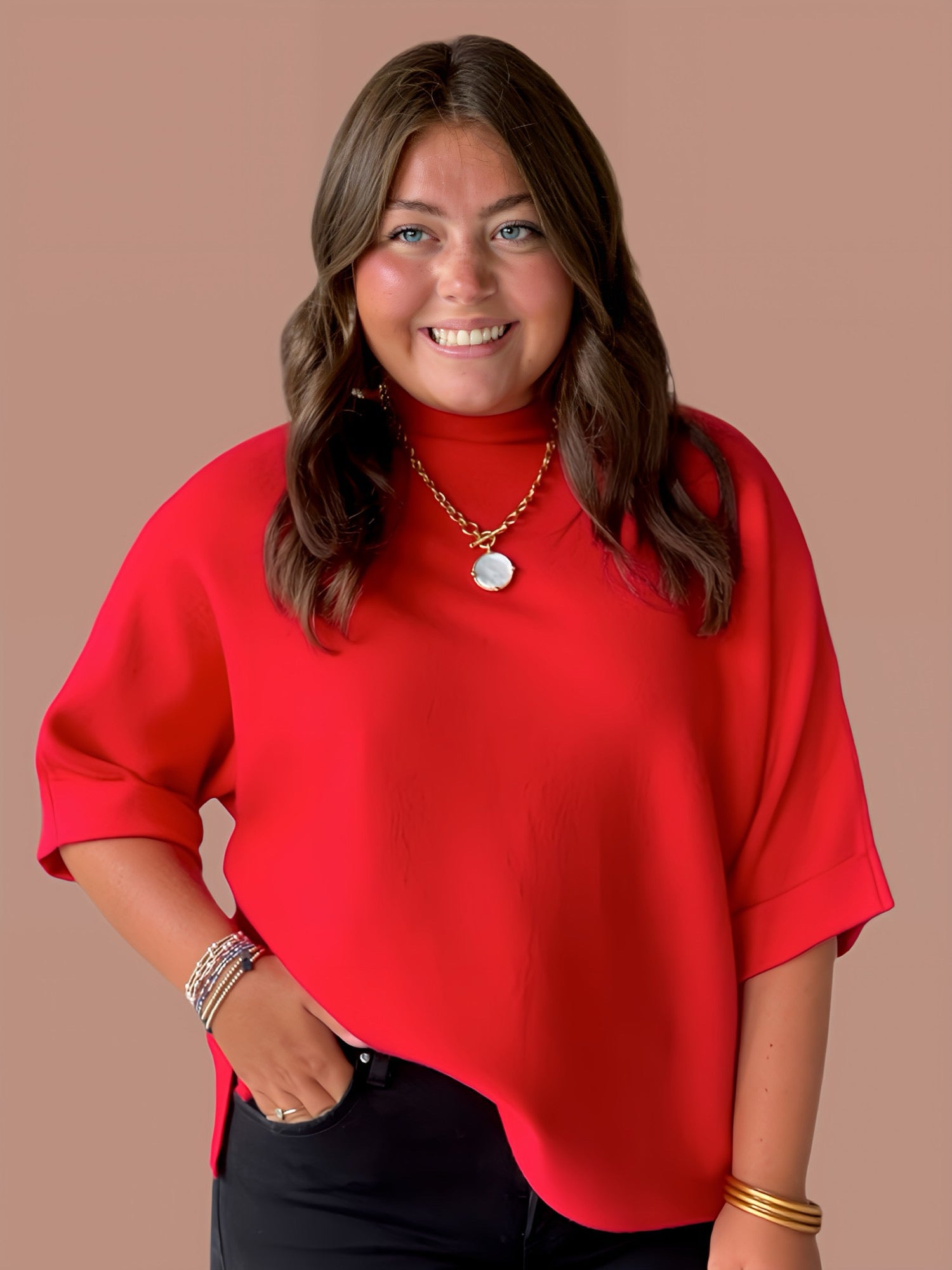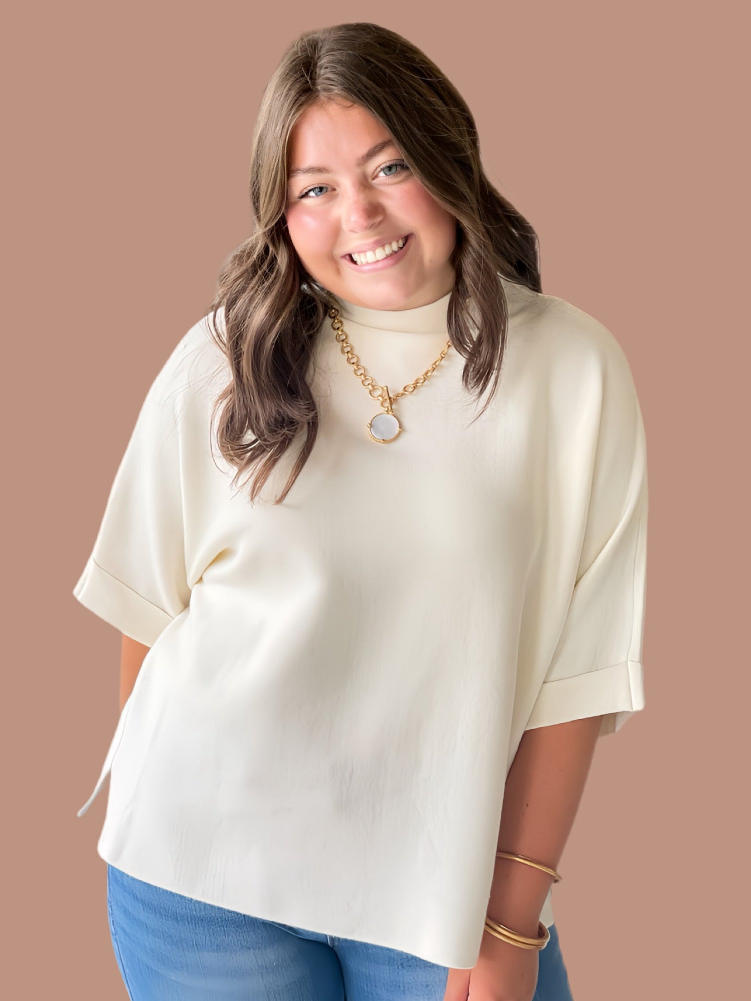 This drop shoulder mock neck sweater offers a refined blend of comfort and style. Crafted from soft fabric, it features a relaxed fit with side slit details that enhance mobility and add a subtle design element. Ideal for layering or wearing alone, this top provides a sophisticated yet casual look suitable for various occasions.