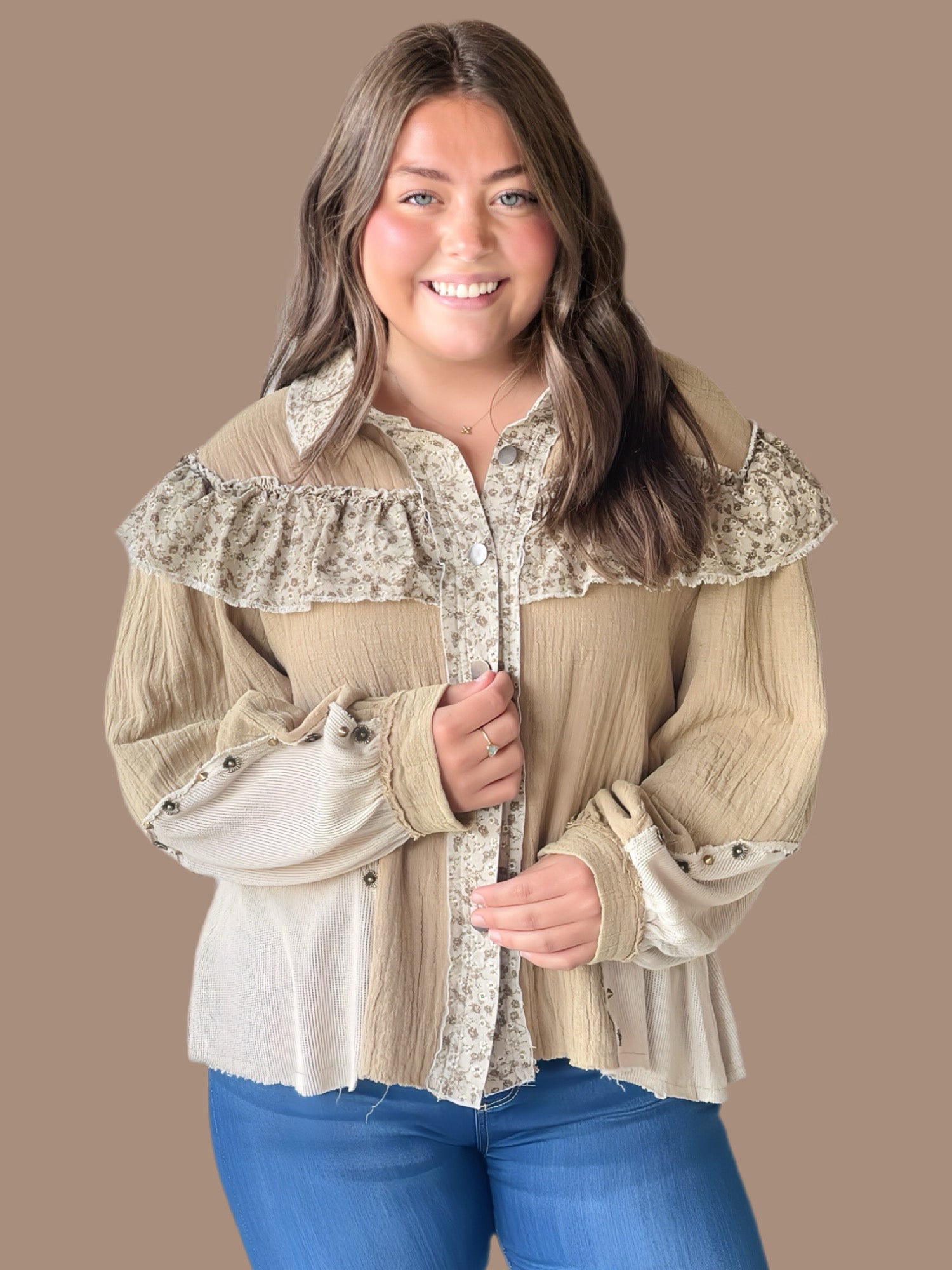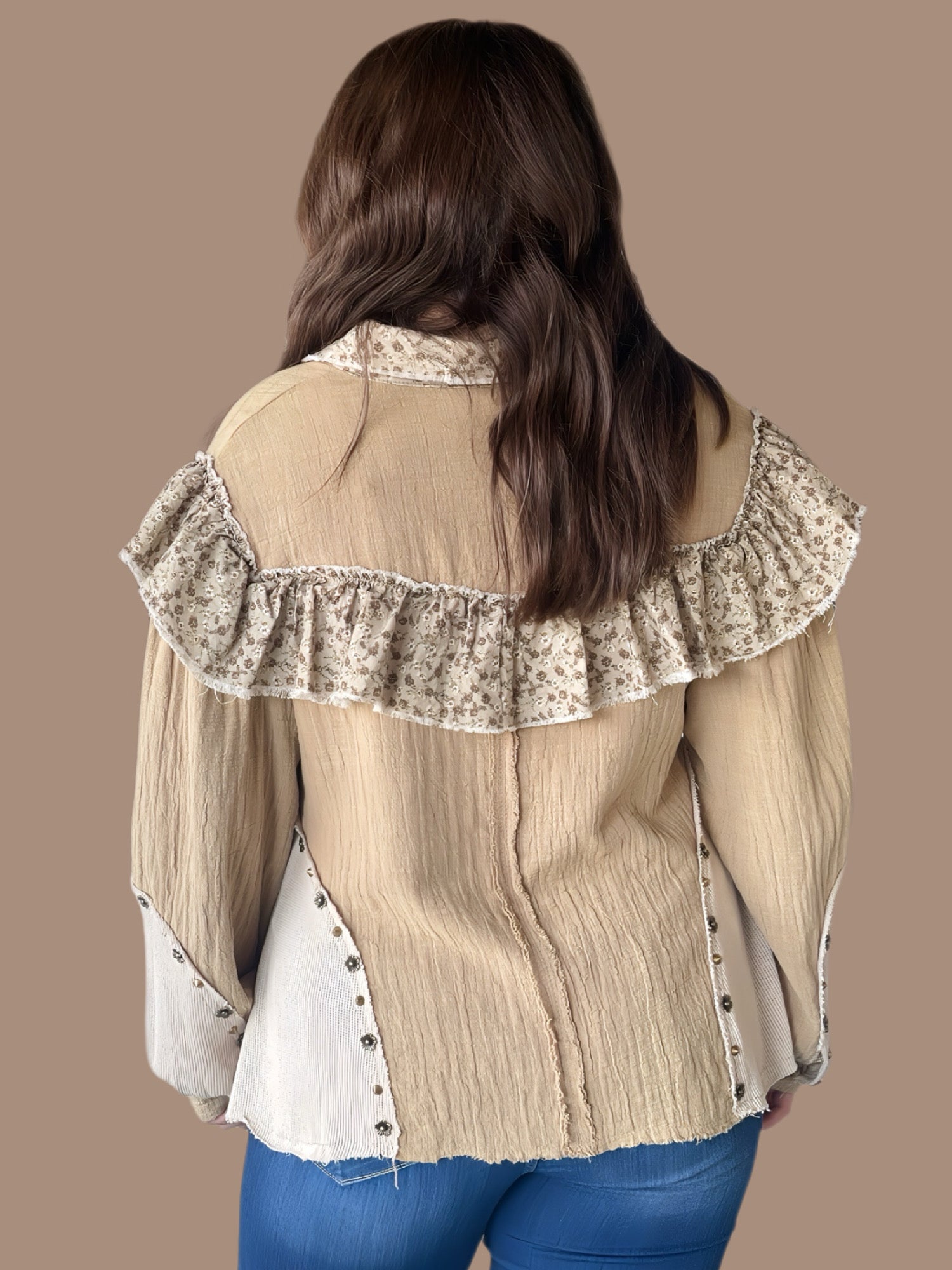 Elevate your casual wardrobe with the Everyday Ease Printed Contrast Top, featuring a classic collar neck and relaxed balloon sleeves for effortless comfort. Crafted from breathable double gauze or durable denim, this top is enhanced with a stylish printed contrast that adds subtle visual interest. Its relaxed fit ensures freedom of movement, making it an ideal choice for day-to-day wear with a touch of refined detail.