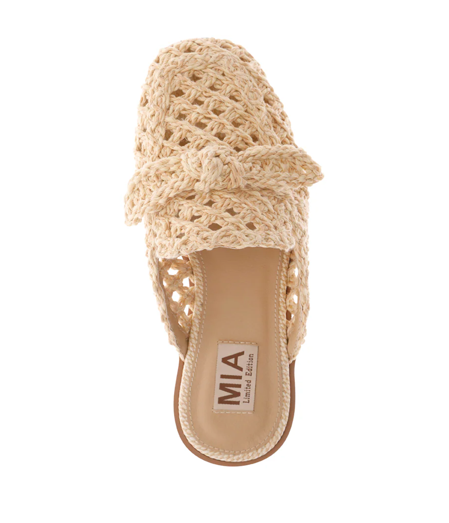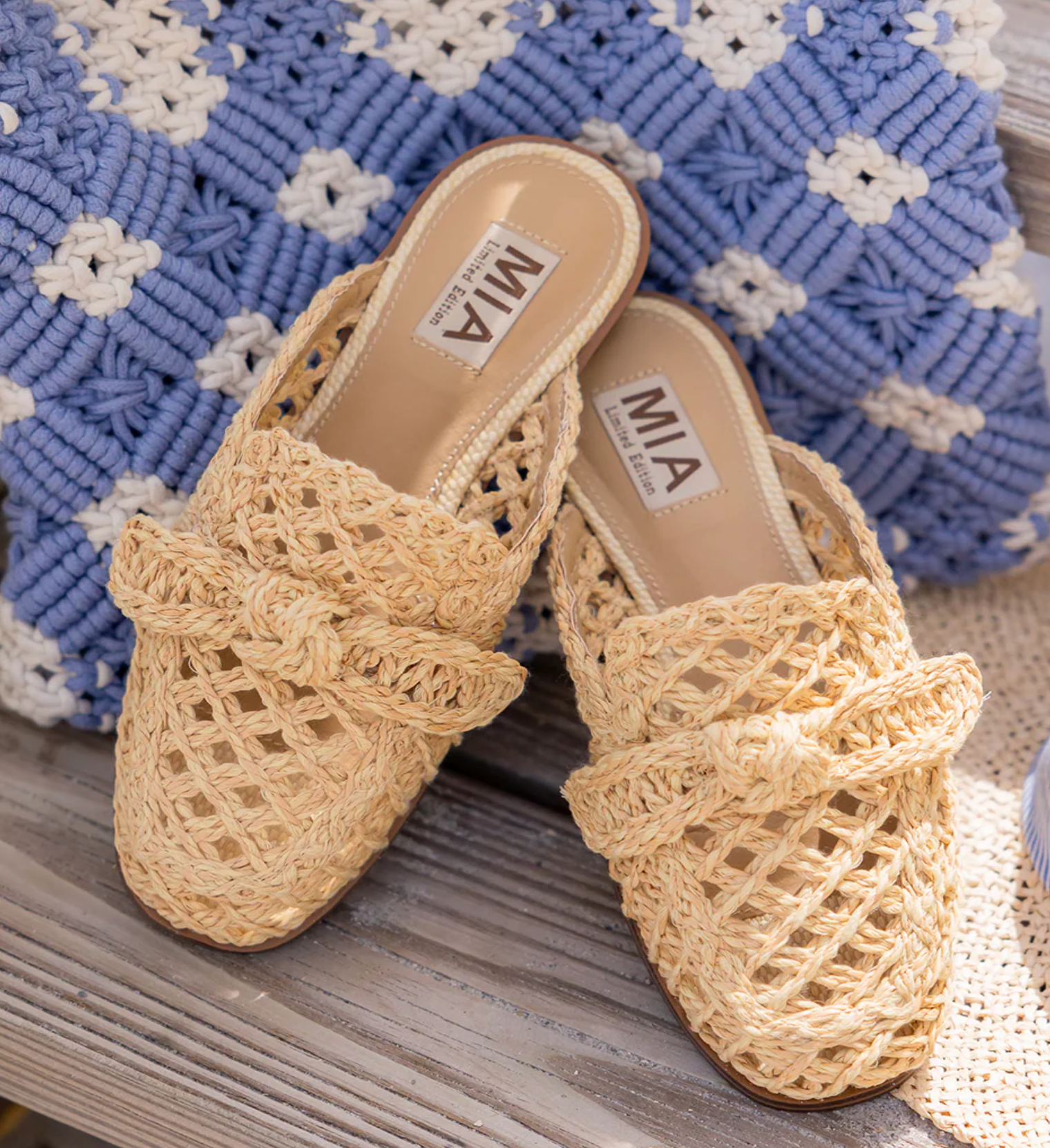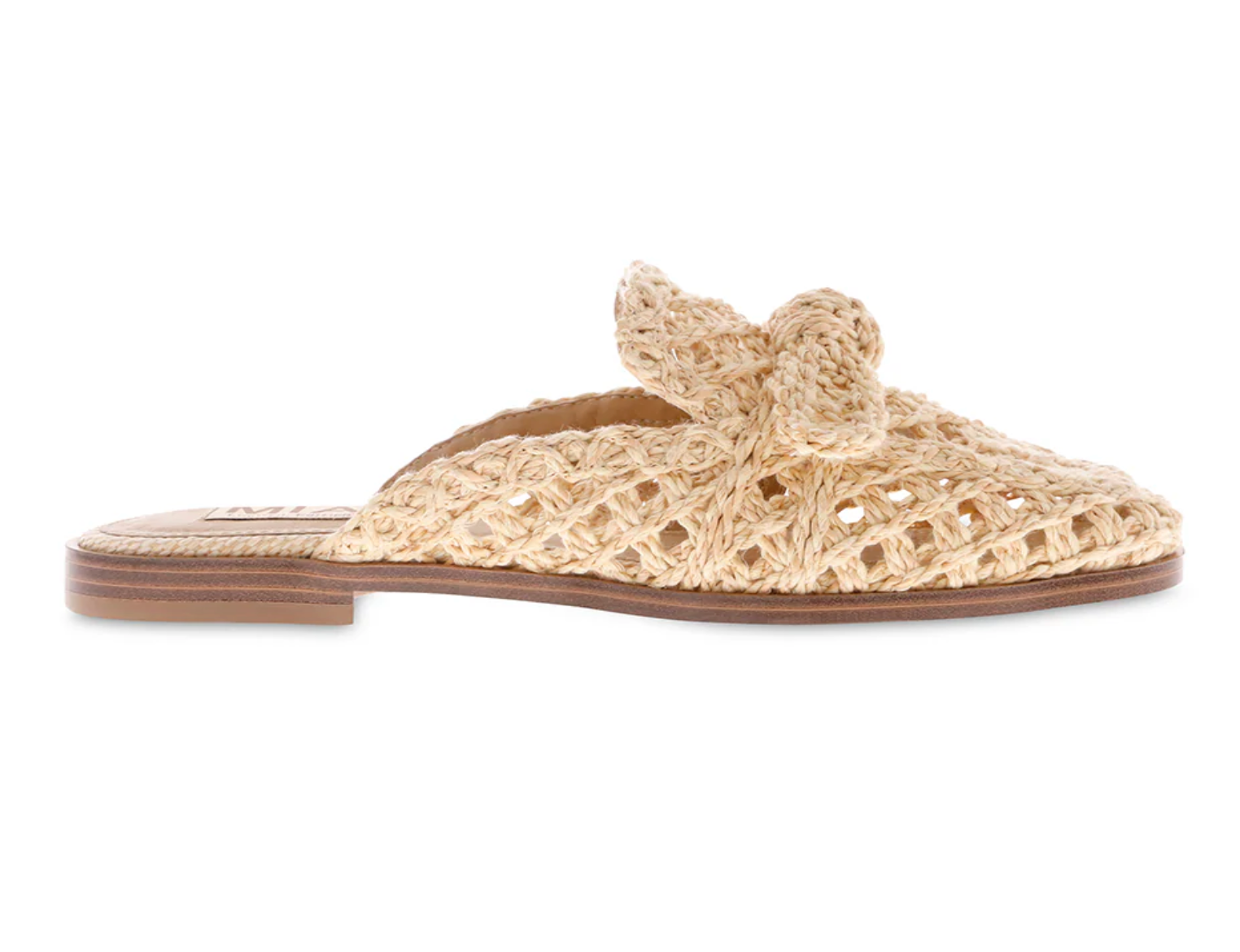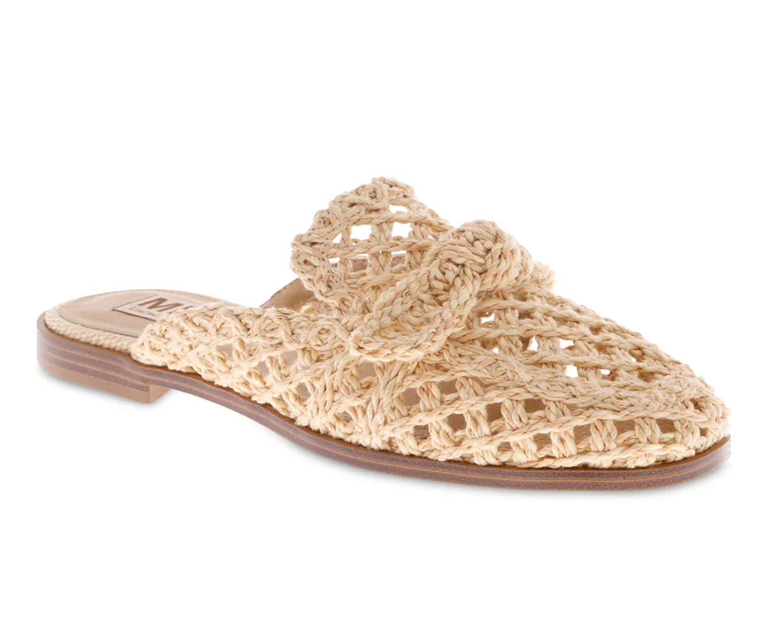Step into style with LAYCE. A modern mule crafted with an intricate woven raffia upper, featuring a leather-lined padded footbed. Finished on a small 0.5-inch stacked heel and timeless square toe design.