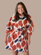 This printed 3/4 sleeve mini dress offers a refined silhouette with its self-tie waist and classic shirt collar. The button-front closure ensures ease of wear, while side pockets add practical functionality. Crafted from lightweight woven fabric, the dress is fully lined and non-sheer, providing comfortable coverage without compromising breathability. Ideal for versatile styling, it combines elegance with everyday wearability.