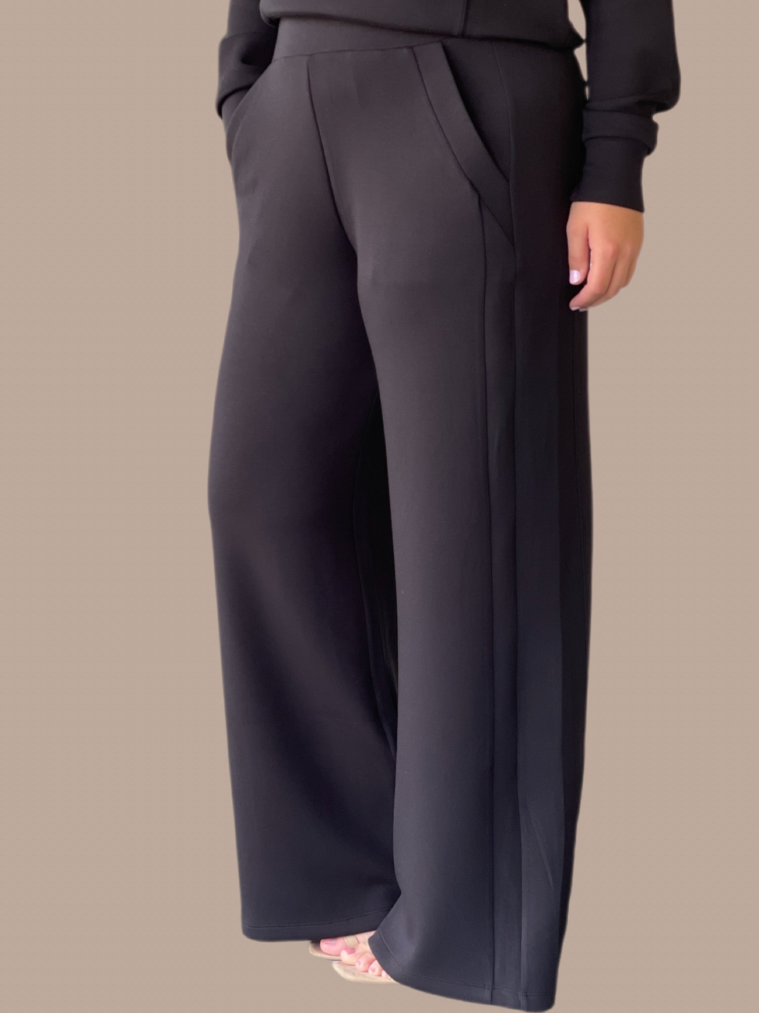 SPANX® AirEssentials Wide Leg Track Pants are made with our ultra-drapey spacer fabric that's breathable, light-as-air, and oh-so soft. These versatile pants feature a relaxed fit with 4-way stretch, a flat front, fit-flexible waistband, and hip pockets to store your essentials. Sleek, stylish, and comfortable, these wide leg track pants will take you anywhere and everywhere.