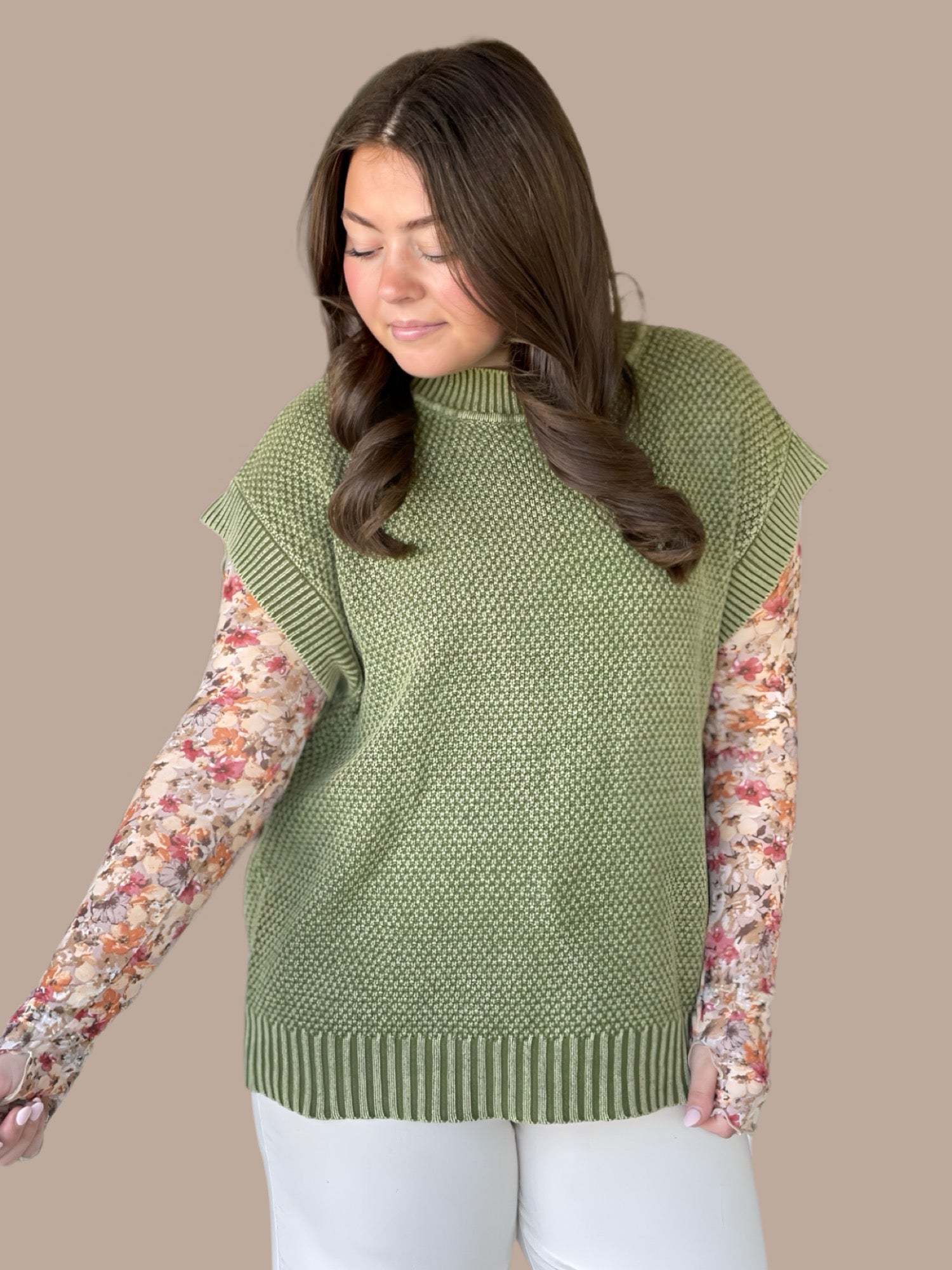 The Vintage-Wash Cap Sleeve Knit delivers understated elegance through its mineral-treated finish and refined silhouette. Featuring cap sleeves and a classic round neckline, this piece transitions seamlessly across seasons—from layering in winter to standalone wear in spring. The textured wash adds visual interest while maintaining versatility, pairing equally well with tailored trousers for professional settings or casual knits for relaxed days. Its structured yet comfortable construction makes it an essential addition to any thoughtfully curated wardrobe.