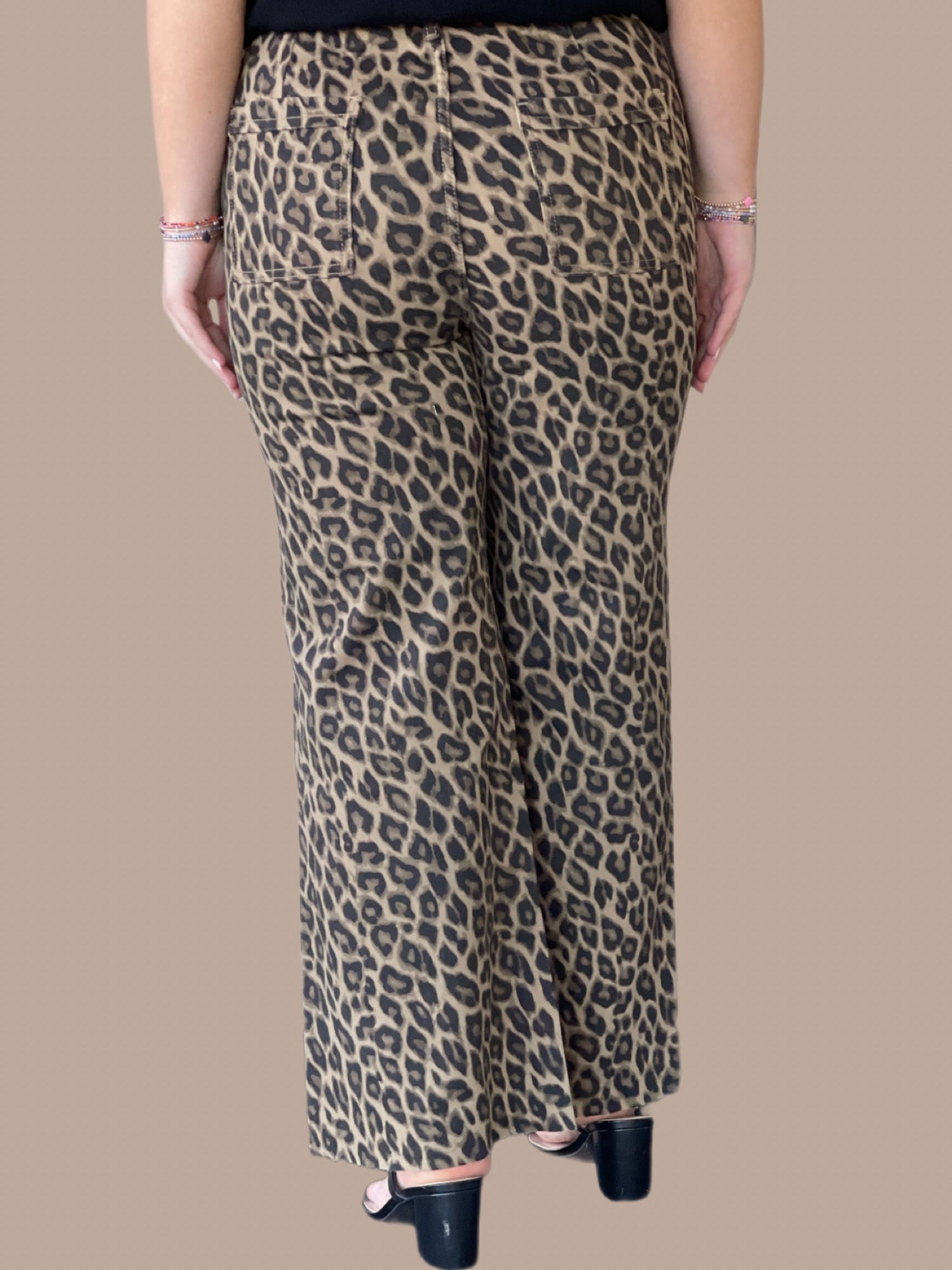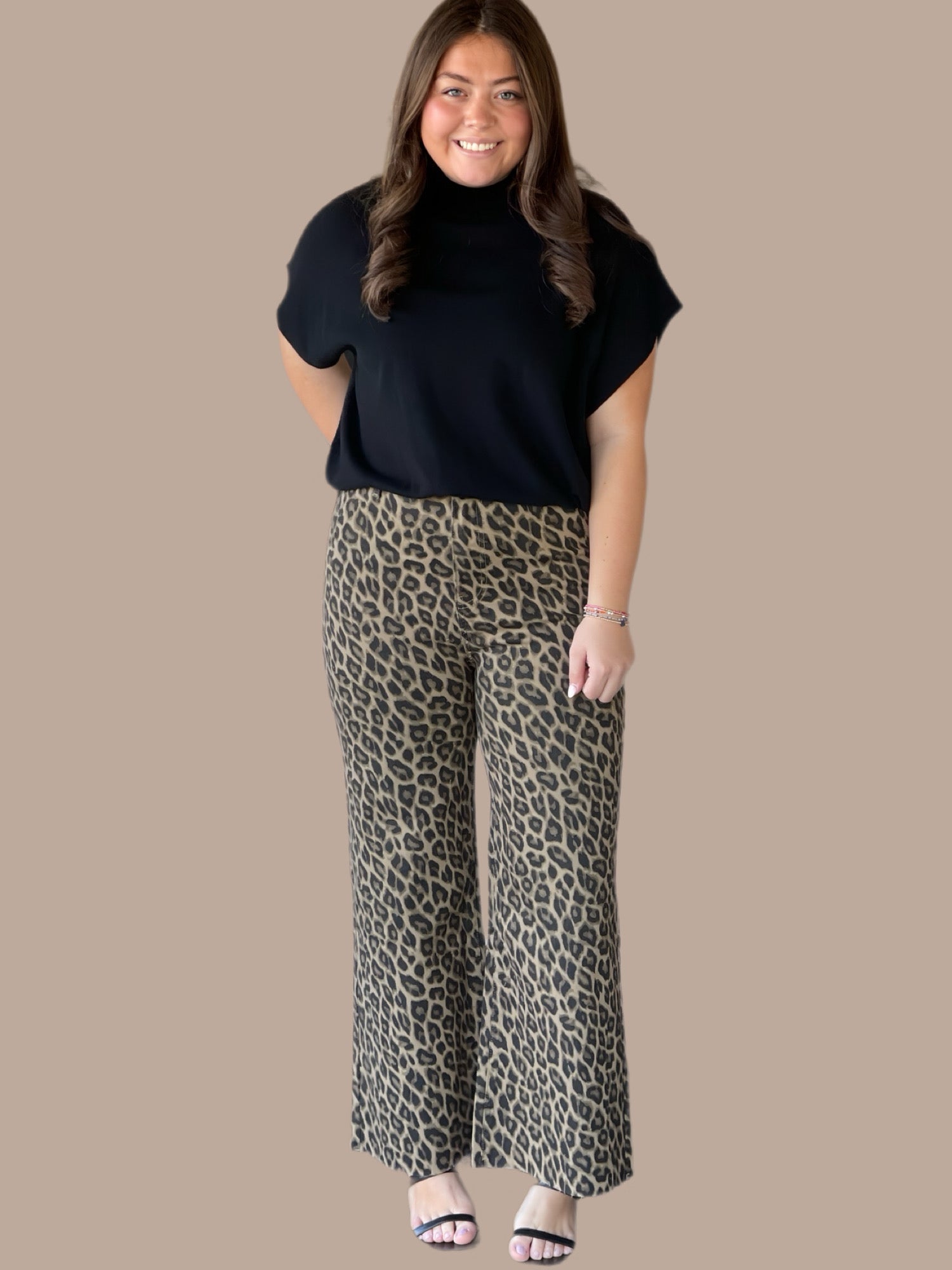 Elevate your denim collection with these Wild Luxe High-Rise Wide-Leg Jeans, featuring a striking animal print that commands attention. Crafted from premium stretch denim, these jeans deliver exceptional comfort and movement throughout your day. The high-rise silhouette flatters your figure while the cropped wide-leg cut creates a modern, fashion-forward look. Designed with a single back pocket and clean-cut hemline, these jeans offer a refined aesthetic that transitions seamlessly from casual outings to elevated weekend styling.