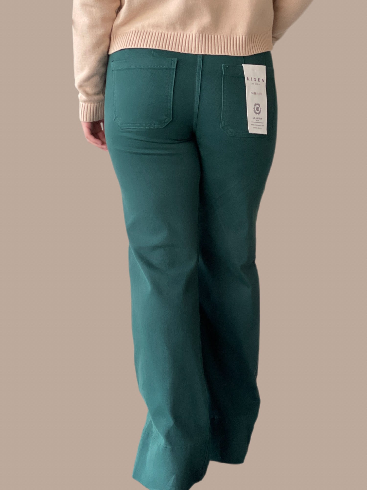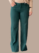 Elevate your wardrobe with these hunter green wide-leg pants, designed for a flattering silhouette. The mid-rise cut pairs seamlessly with any top, while integrated tummy control technology smooths and shapes for all-day confidence. The wide hem creates an elegant, elongated line that works beautifully with both flats and heels. Crafted for versatility, these pants transition effortlessly from office to evening, making them an essential addition to your collection.