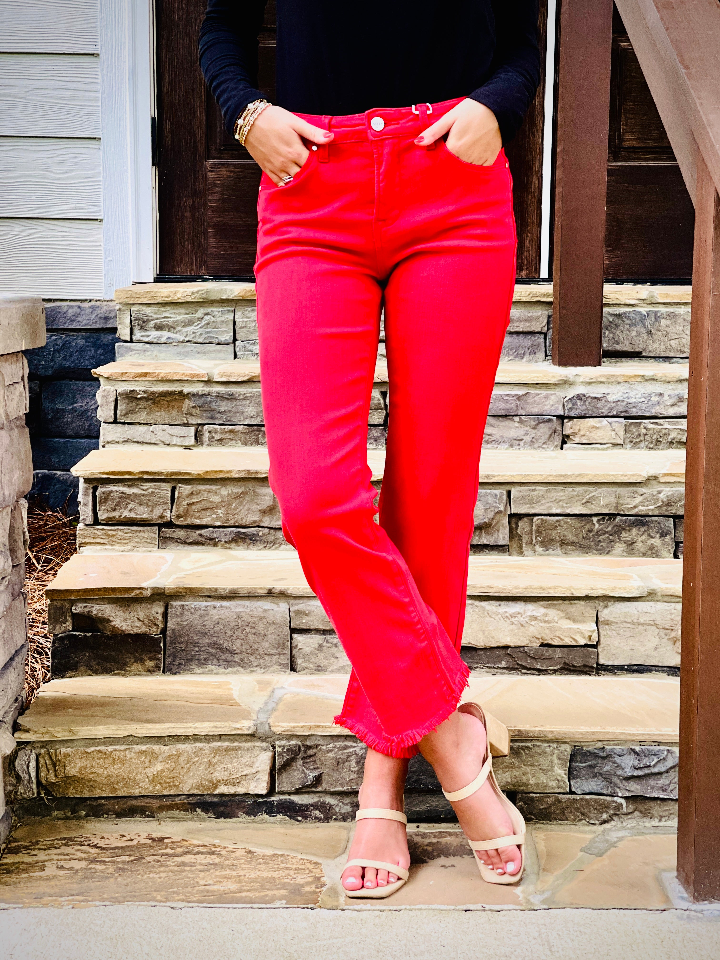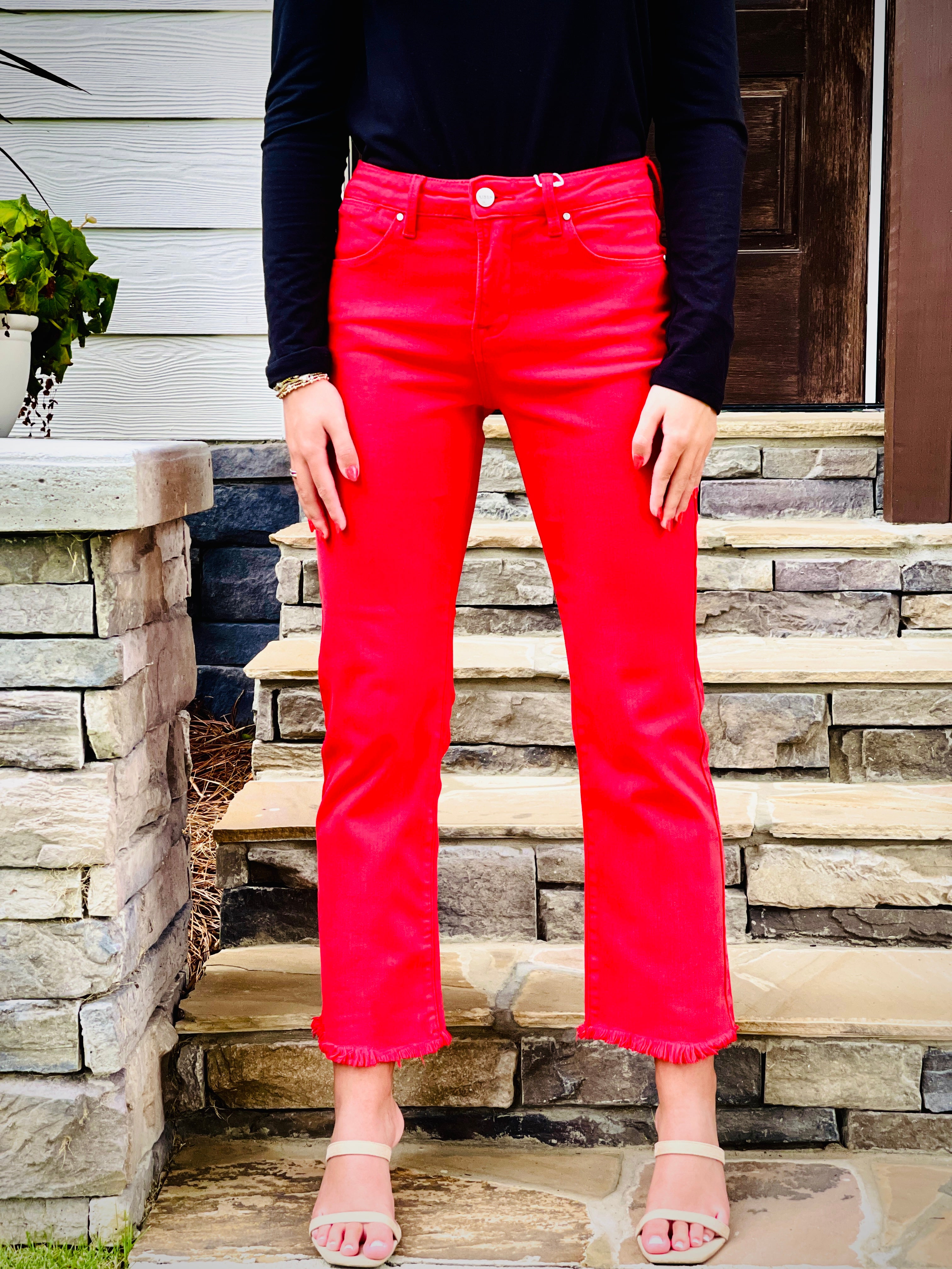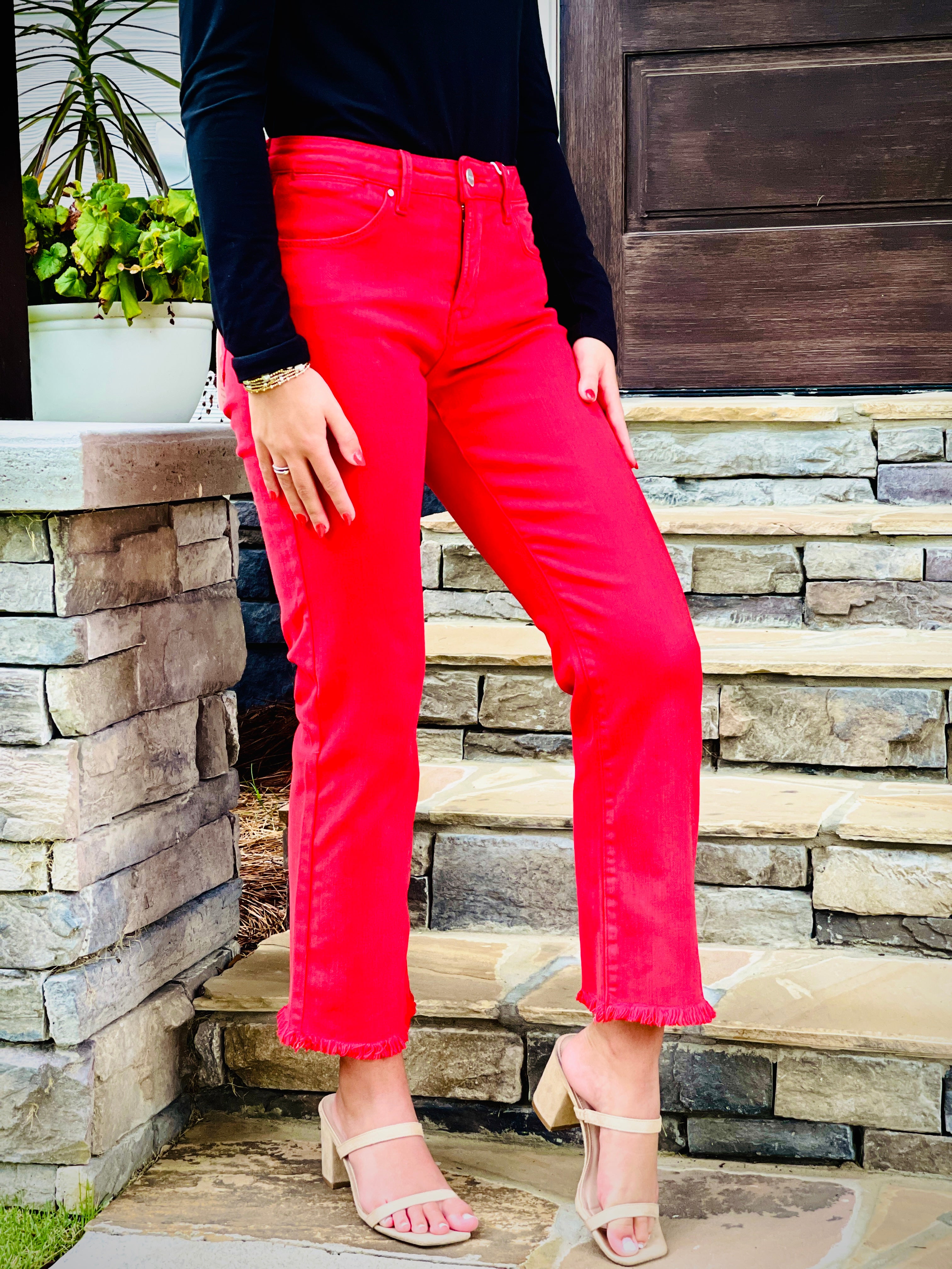Achieve a slimmer appearance and comfortable fit with these mid-rise, crop straight jeans featuring tummy control technology. Finished with a trendy frayed hem, these jeans provide both style and support.