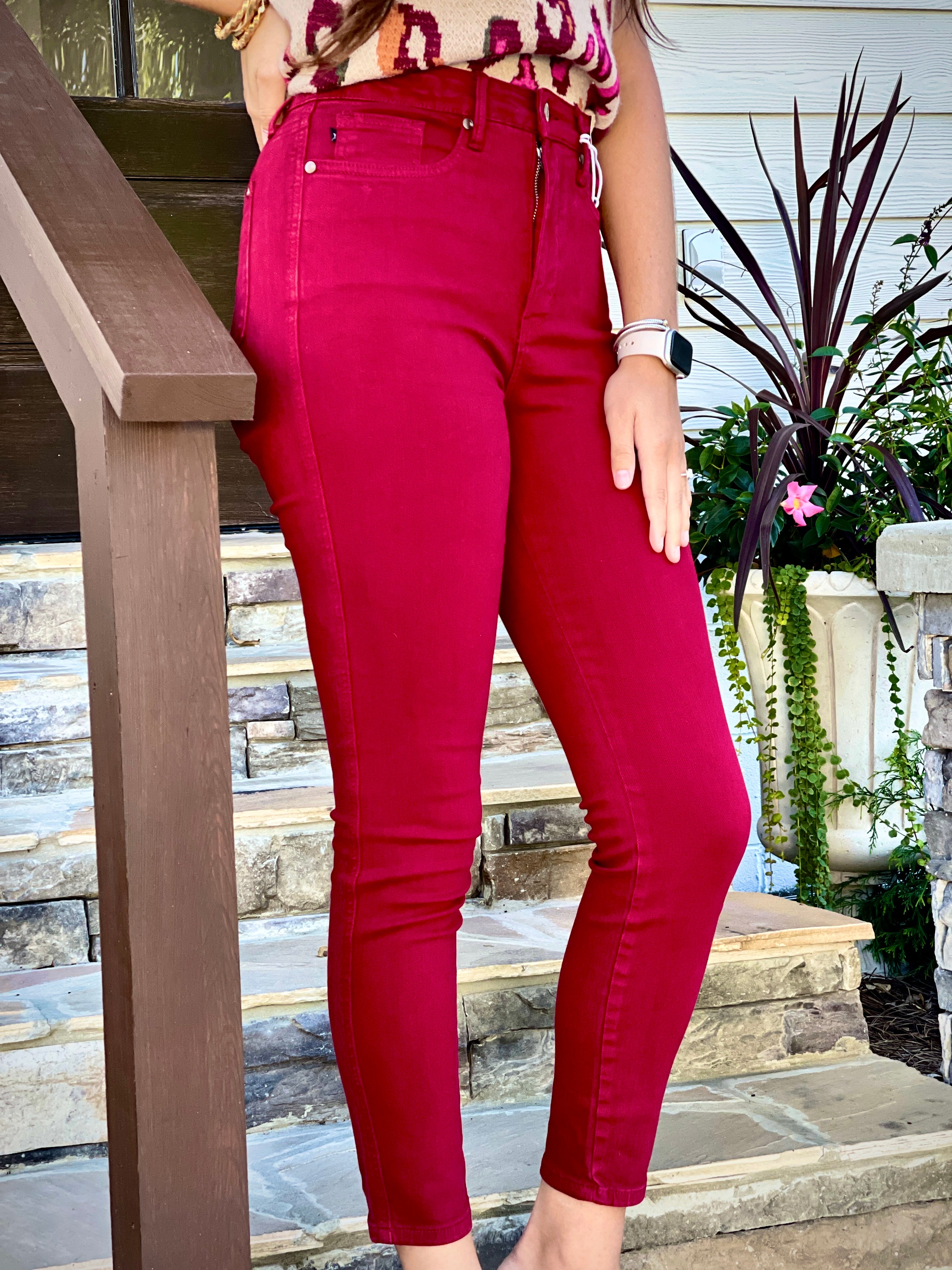 Scarlet Judy Blue Skinny Jeans offer tummy control and garment-dyed fabric for a slim silhouette and lasting color. Perfect for any occasion, these jeans will keep you looking stylish and feeling comfortable.