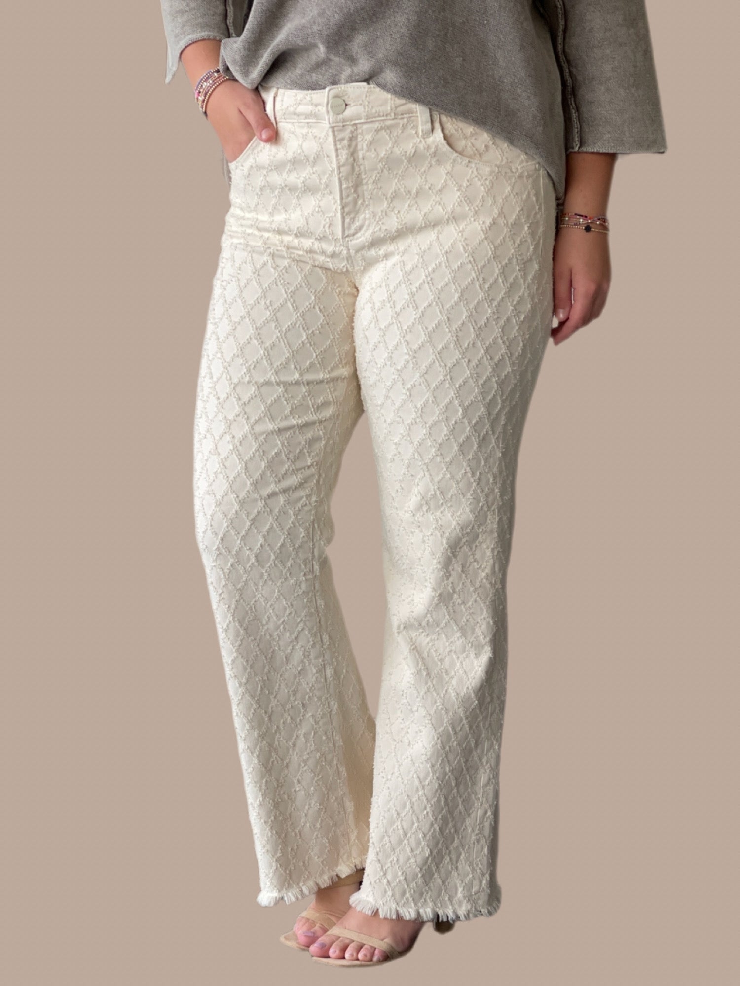 These high-rise ankle straight pants deliver a sleek silhouette with built-in tummy control technology that smooths and flatters your midsection. The textured fabric adds visual interest while maintaining a polished, professional appearance. The high-rise waistband provides secure coverage and elongates your legs, while the straight leg cut offers timeless versatility for any occasion. Perfect for creating a confident, put-together look that works from office to evening.