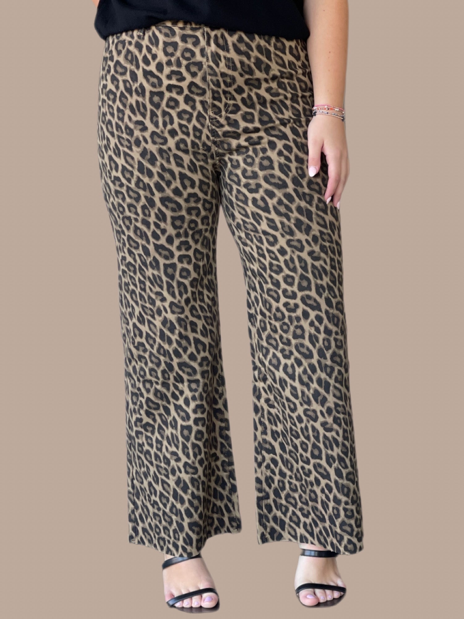Elevate your denim collection with these Wild Luxe High-Rise Wide-Leg Jeans, featuring a striking animal print that commands attention. Crafted from premium stretch denim, these jeans deliver exceptional comfort and movement throughout your day. The high-rise silhouette flatters your figure while the cropped wide-leg cut creates a modern, fashion-forward look. Designed with a single back pocket and clean-cut hemline, these jeans offer a refined aesthetic that transitions seamlessly from casual outings to elevated weekend styling.
