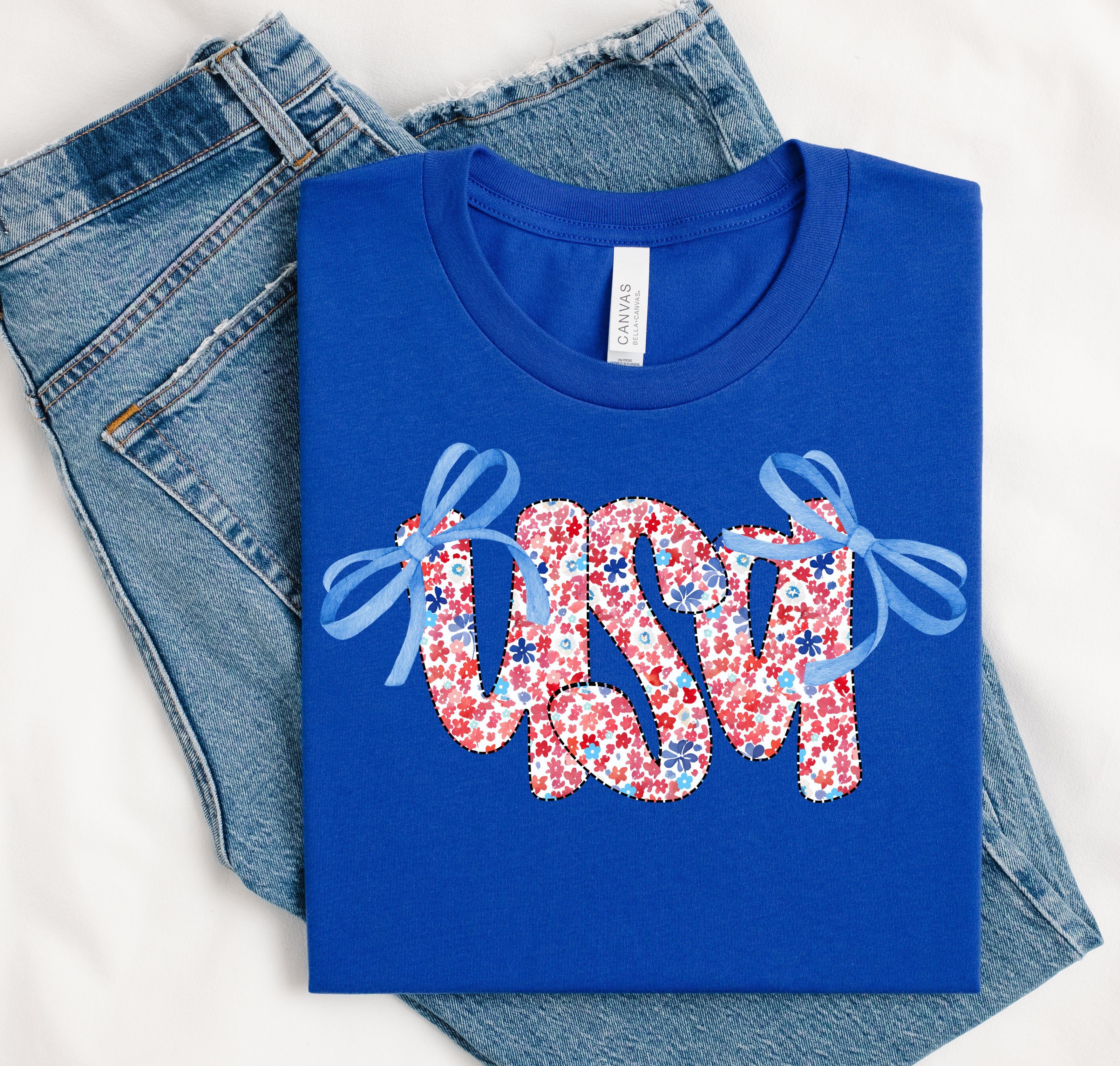 Our Coquette USA Tee brings girly charm to patriotic style — perfect for parades, BBQs, and fireworks all summer long! 🎇