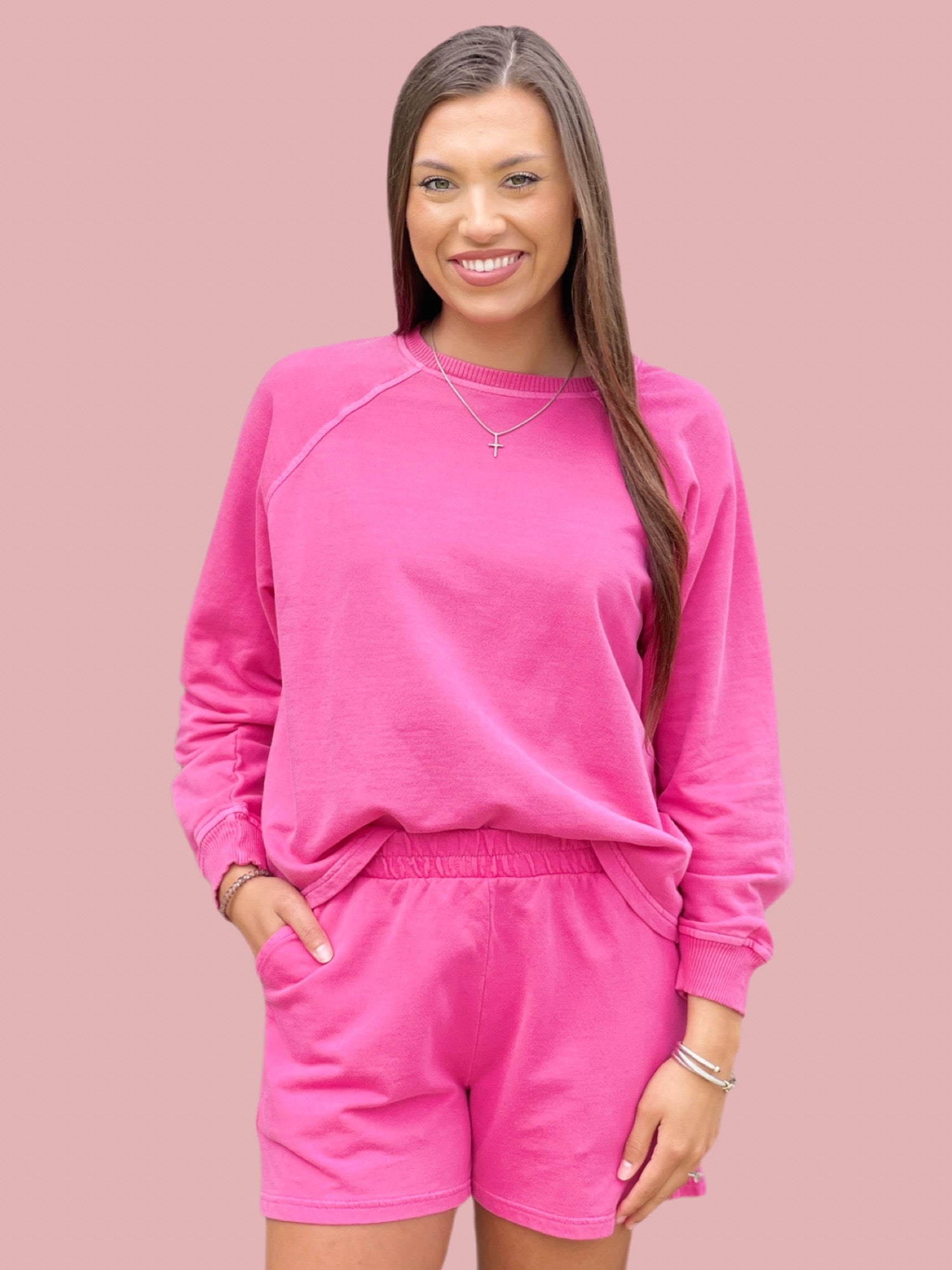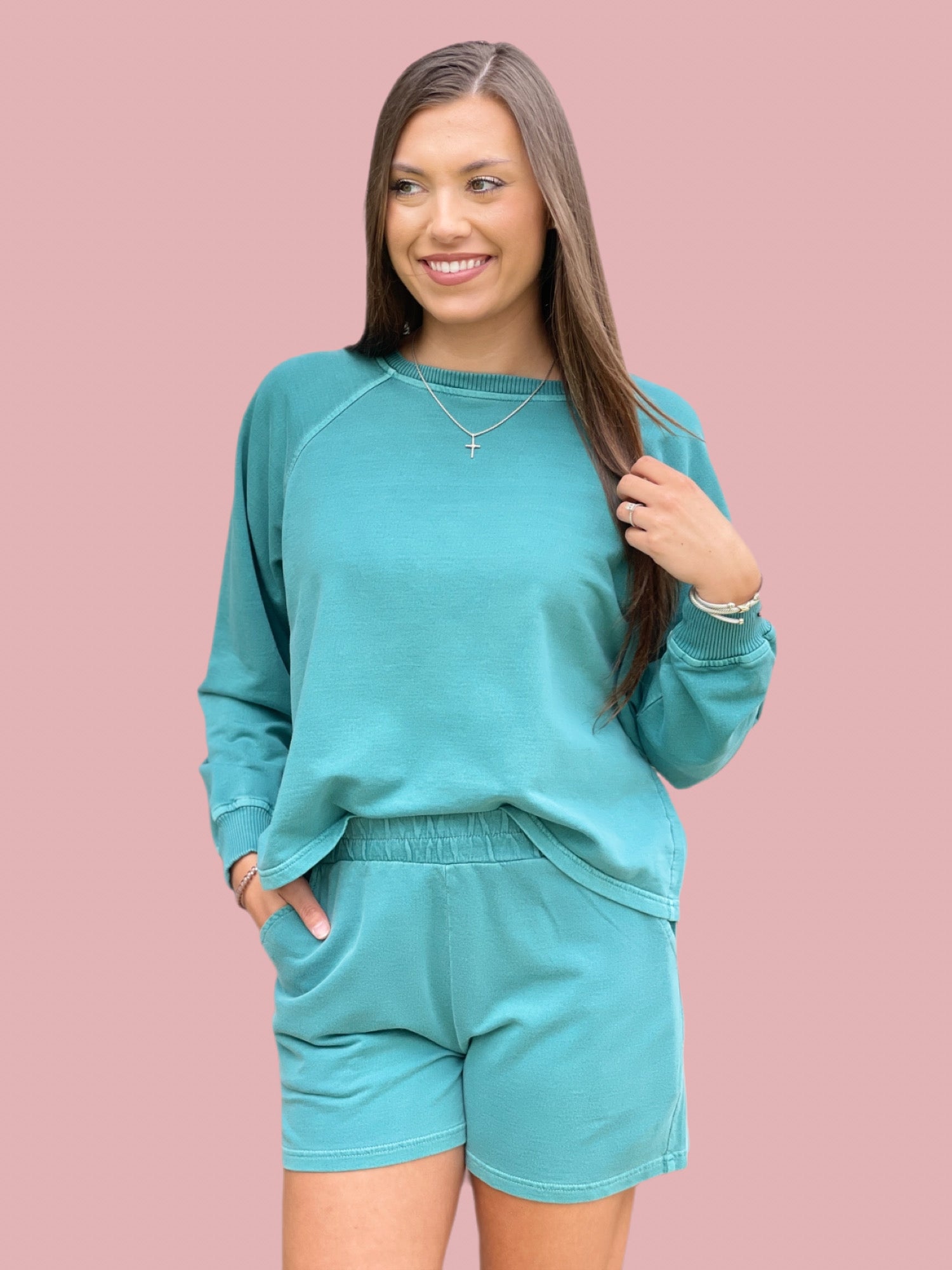 Stay comfortable and stylish in our French Terry Pigment Dye and Enzyme Wash Pullover & Short Set. Made with high-quality materials, this set features a unique dye and wash process for added durability. Perfect for lounging or running errands, our set offers the perfect combination of fashion and function.