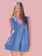 This Mineral Washed Romper is a must-have addition to any wardrobe. With a deep V-neckline and front tie closure, it exudes effortless style and versatility. The front and back pleats add unique detail and the side zipper closure ensures a secure fit. Made from a relaxed fabric, it offers maximum comfort and a flattering fit.
