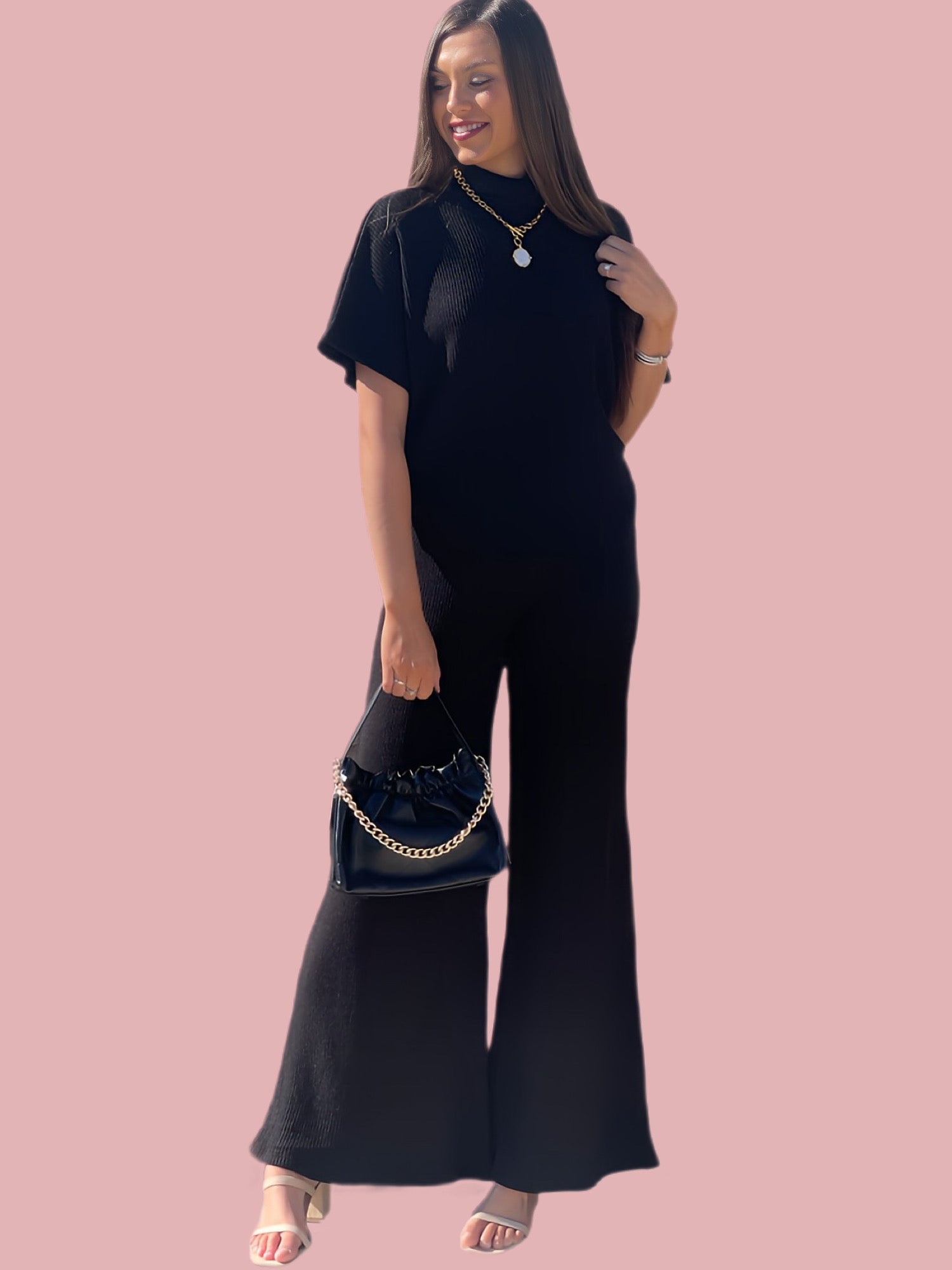 Discover ultimate comfort with our Sweater Mock Neck Short Sleeve Top & Long Pants Set. Designed with a cozy mock neck and short sleeves, this set keeps you stylish and comfortable. Made with high-quality fabric, you'll feel luxurious as you relax and lounge in this versatile set.